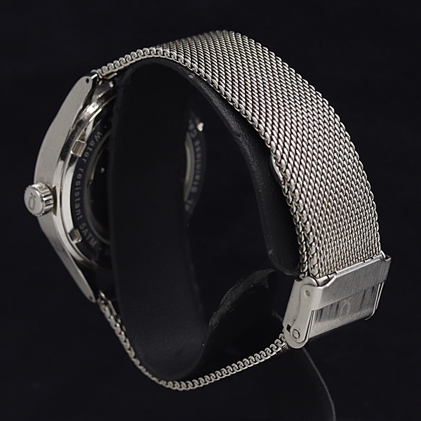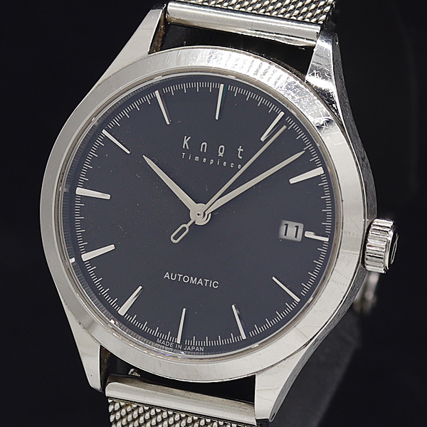 1円 稼働 良品 ノット AT/自動巻 タイムピース デイト 裏スケ 黒文字盤 メンズ腕時計 2000000 11PRY IKE