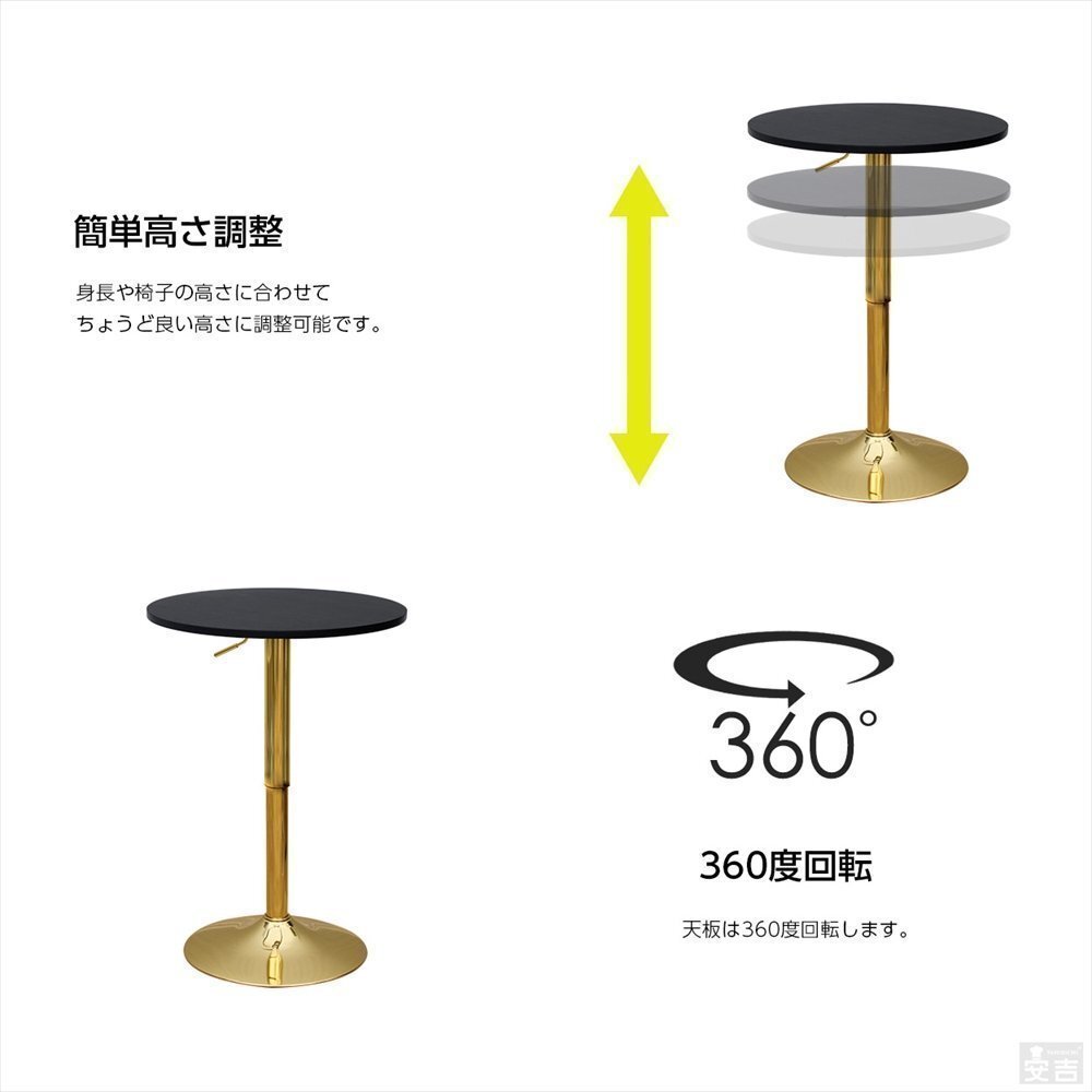 | カラー | ヴィンテージブラウン | 特長 | ・テーブルは360度回転します。 ※天板の固定は出来ません。 ・テーブル下のレバーで高さを調整できます。 ・バーやカフェのテーブル、休憩室や喫煙室のテーブルにも最適です。 ・昇降式なので座ってでも立ってでも利用できるテーブルです。 |