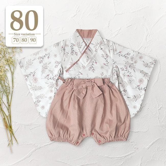 新品未使用 80cm ボタニカルピンク〔#BMセパレート袴〕セットアップ 袴ロンパース ベビーキッズ 子供女の子 着物 お宮参り 初節句 ひな祭り