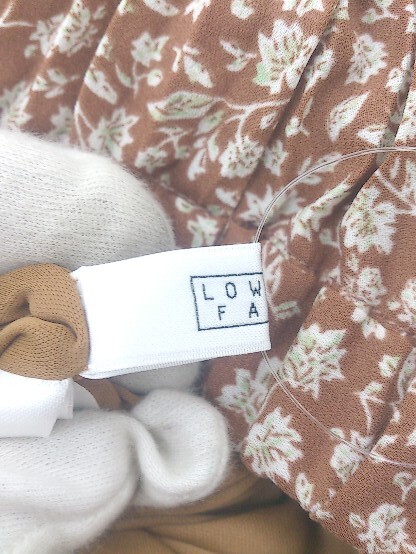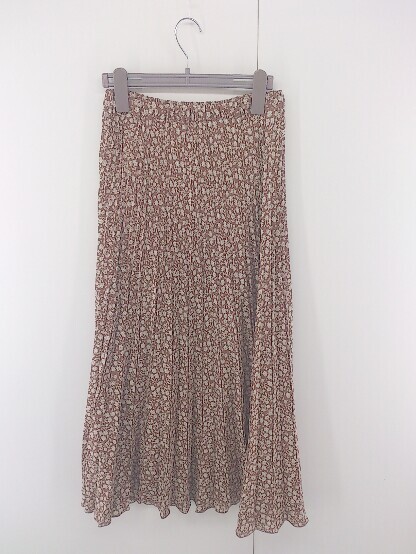◇ LOWRYS FARM 花柄 ウエストゴム ロング プリーツ スカート サイズF ブラウン ホワイト グリーン系 レディース P