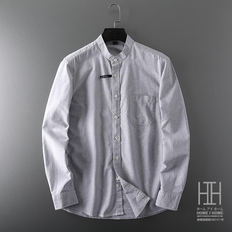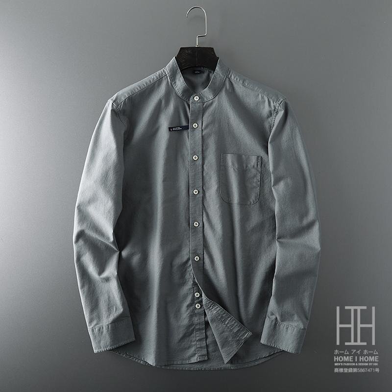 シャツ メンズ バンドカラーシャツ 長袖 カジュアルシャツ 無地 シンプル ノーカラー スタンドカラーシャツ