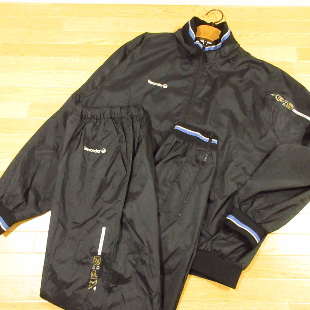 ◎美品 80s!asics アシックス XL 上下セット サーモアップ サウナスーツ 発汗 ジャケット&パンツ ヴィンテージ メンズ 黒◆BA4037