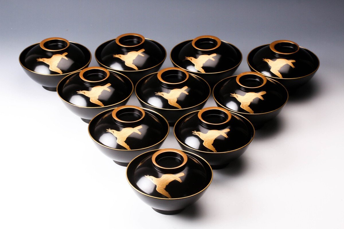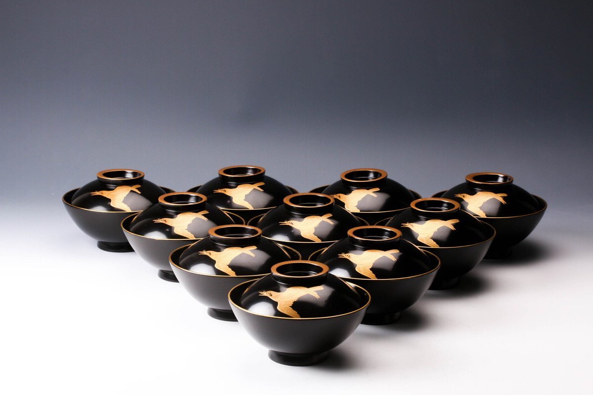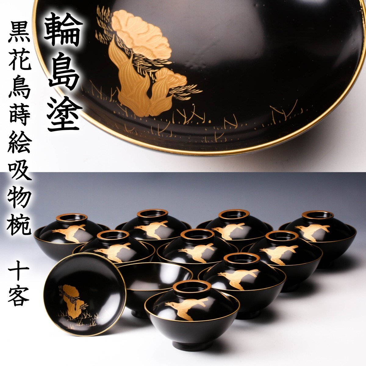 【佳香】輪島塗 黒花鳥蒔絵吸物椀 十客 仕立箱