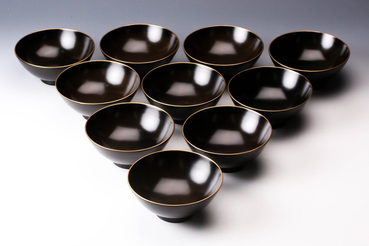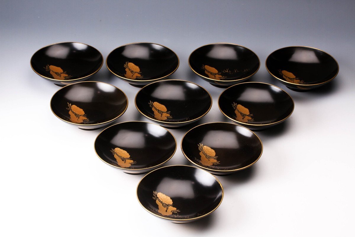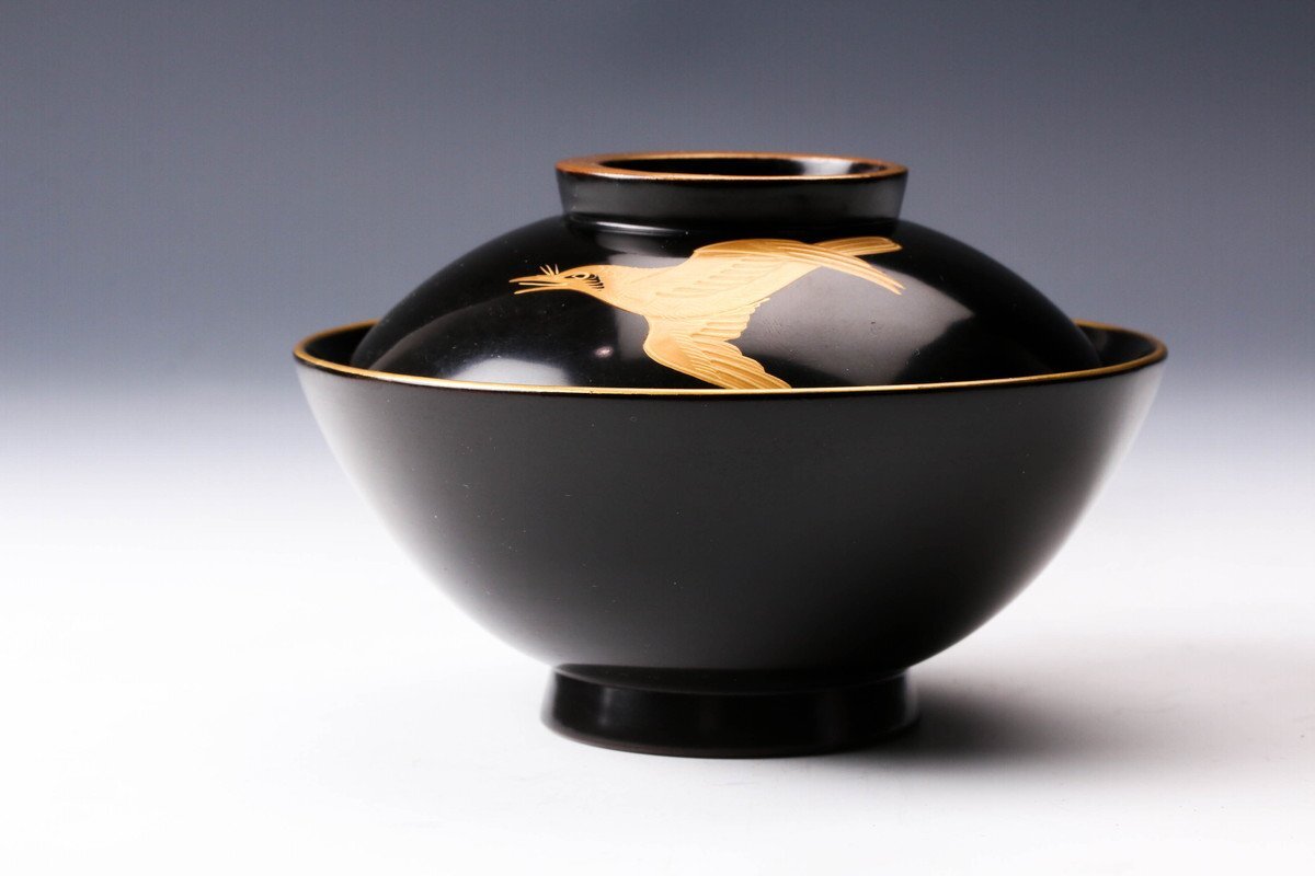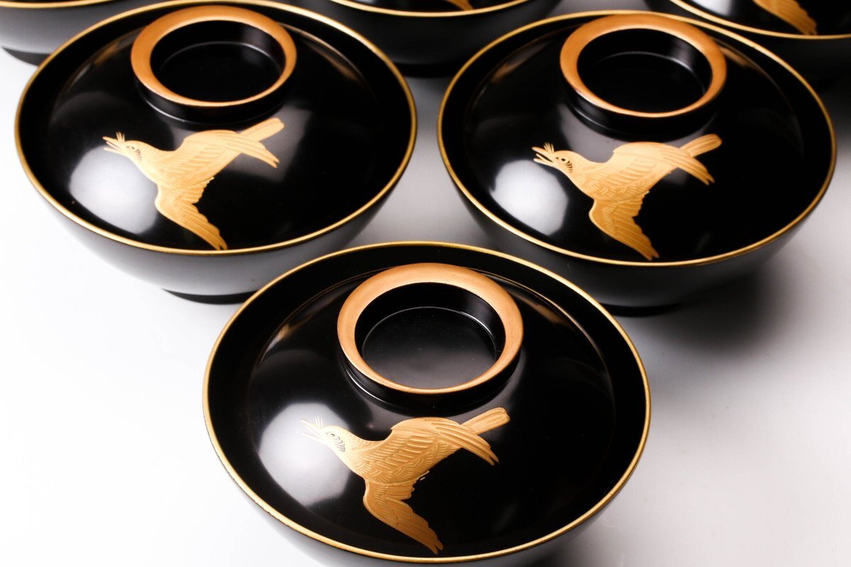 【佳香】輪島塗 黒花鳥蒔絵吸物椀 十客 仕立箱