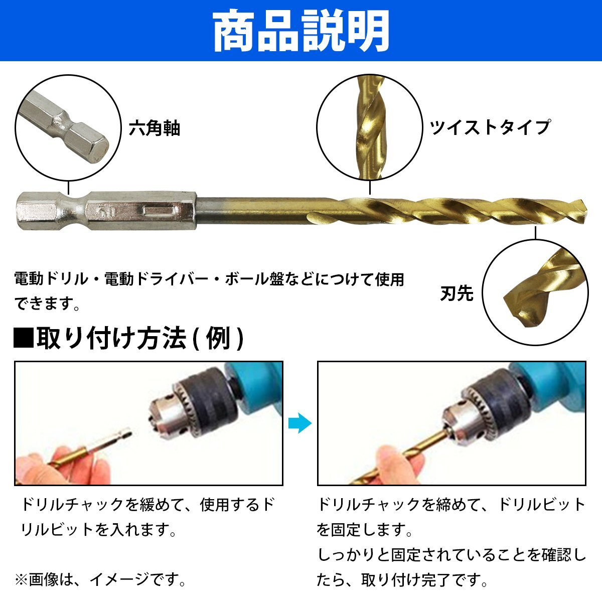 『55本セット』六角軸 ドリル 1.5mm 2mm 2.5mm 3mm 3.5mm 4mm 4.5mm 5mm 5.5mm 6mm 6.5mm 各5本 鉄鋼用 電気ドリル HSS 鉄鋼