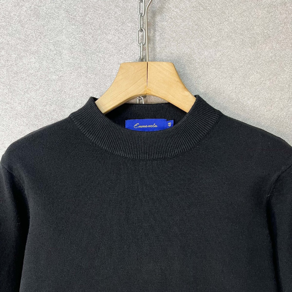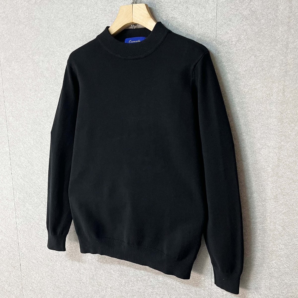 定番・セーター 定価4万◆Emmauela・イタリア・ミラノ発◆ウール混 保温 伸縮性 ニット 無地 クールネック カットソー インナー 長袖 2XL