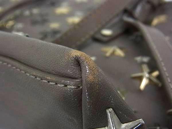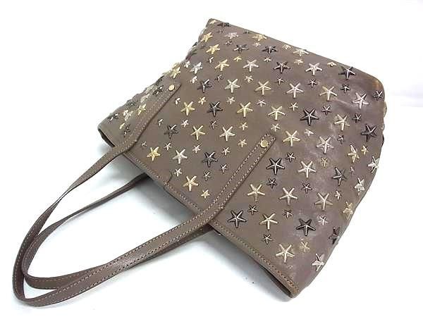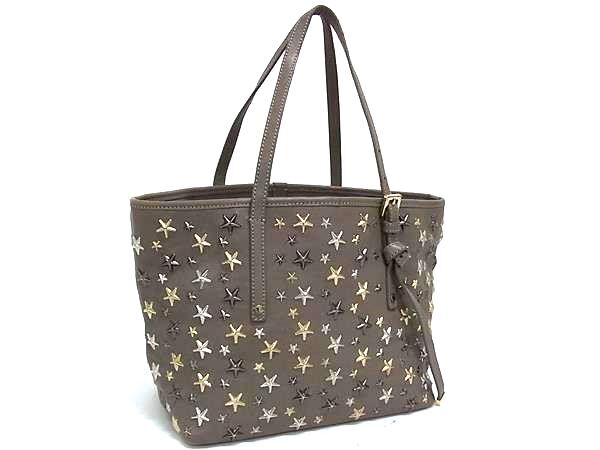 1円 ■美品■ JIMMY CHOO ジミーチュウ サシャ スタースタッズ レザー ハンドバッグ トートバッグ レディース ブラウン系 GA6624