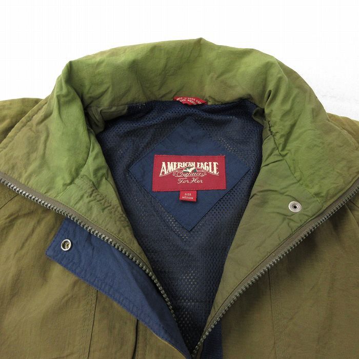 【商品名】 古着 アメリカンイーグル 長袖 ナイロン ジャケット レディース 00年代 00s ワンポイントロゴ ラグラン 大きいサイズ 濃緑