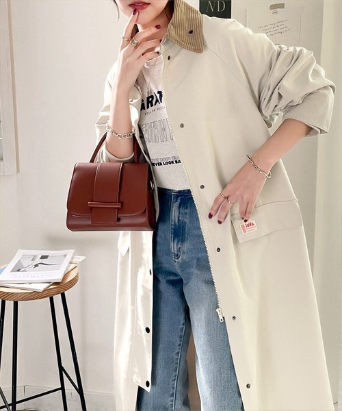 キーワード:ステンカラーコート コート レディース ロング丈 無地 秋 冬