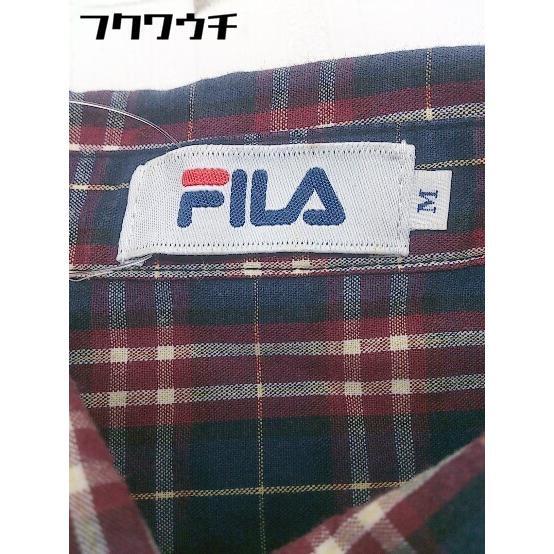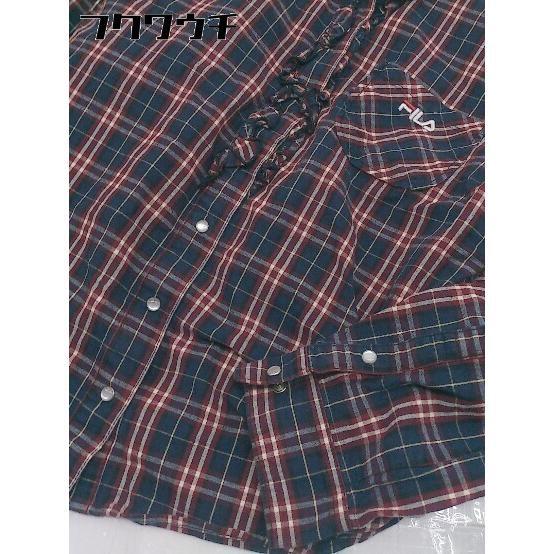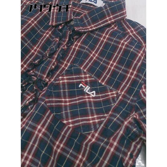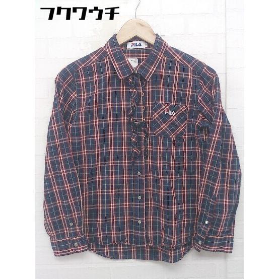 ◇ FILA フィラ チェック フリル 長袖 シャツ サイズM ネイビー ボルドー系 レディース