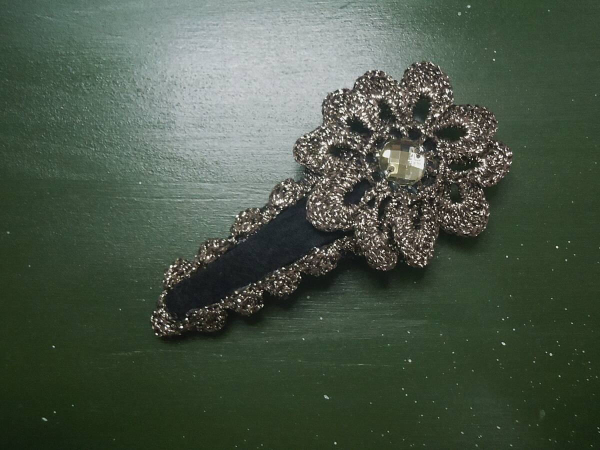 ラメ糸で編んだブレード、花モチーフ