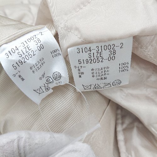 ◇ ⊇ LAUTREAMONT ロートレアモン 裏地キルティング取り外し可能 長袖 トレンチコート サイズ38 ベージュ レディース E