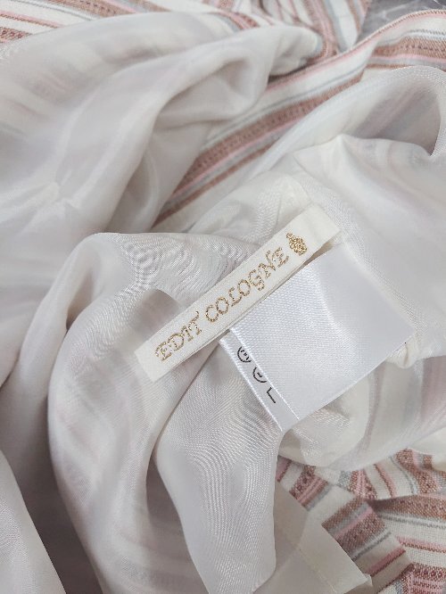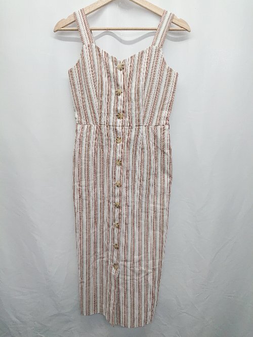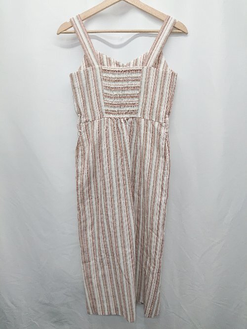 ◇ ◎ ⊂ EDIT COLOGNE ストライプ柄 膝下丈 ジャンパー スカート サイズ2 ブラウン マルチ レディース E