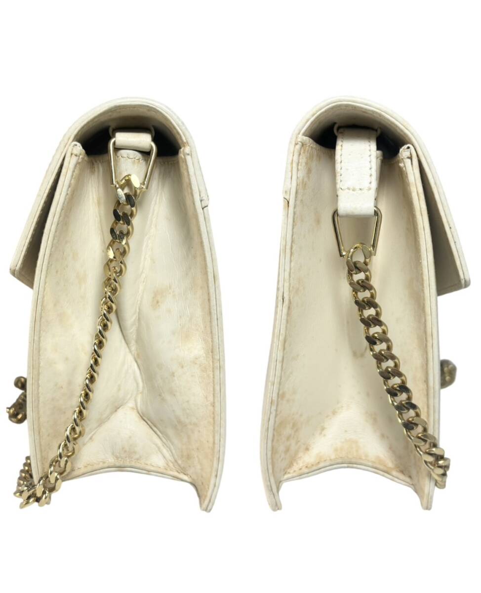 【※弊社控え:No. OYD250120015】 【商品状態】 ・中古、全体的にシミや汚れ ・チェーン状態良好、角スレ若干 【商品サイズ】 ・幅:約25cm ・縦:約16cm ・厚さ:約8cm ・チェーンの長さ:約81cm 【フラップ】 ・マグネットタイプ(開閉問題無し) 【ポケット数】 ・内ポケット×1 【備考】 ・チェーン取り外し可、クラッチバッグとしても利用可 【付属品】 ・本体×1 【入札時・落札後の注意事項】 ※ここ最近、転載画像を見ず入札を入れる方が非常に増えております。 転載写真の画像・写真でのご判断の上、ご入札下さいませ (モニターの環境により、実物とお色味が違う場合がございますので、ご理解の程宜しくお願い致します。) ※すり替え防止の返品・返金は承る事ができません。 画像よりご理解いただける方のみご入札くださいませ。 ※入札後のキャンセルや取り置きなどは承っておりませんので入札の際はご注意下さい。 ※取引ナビ以外で、直接のメールなどで、お取引をお願いするご連絡等はしておりませんので予めご了承ください。 ※落札後24時間以内にご連絡、 72時間以内にご入金可能な方のみご入札下さい。 ※いかなる理由であっても、直接の商品のお渡しは致しませんので、ご理解ご了承の程、宜しくお願い致します。 また上記記載の情報は、追跡番号や受取方法の記載であり、 選択可能な発送方法は発送詳細に記載しているもののみとなります。 ※発送の際の紛失・破損等は責任は負いかねます。 発送業者様宛てに、ご対応いただきますようお願い申し上げます。 ※領収書の発行は行っておりません。 |