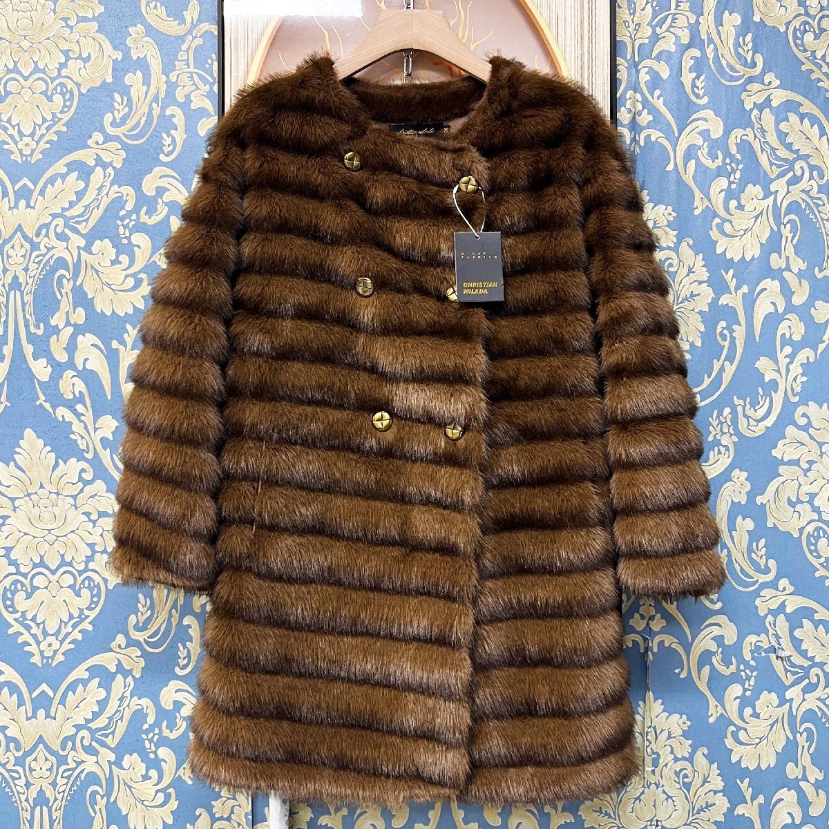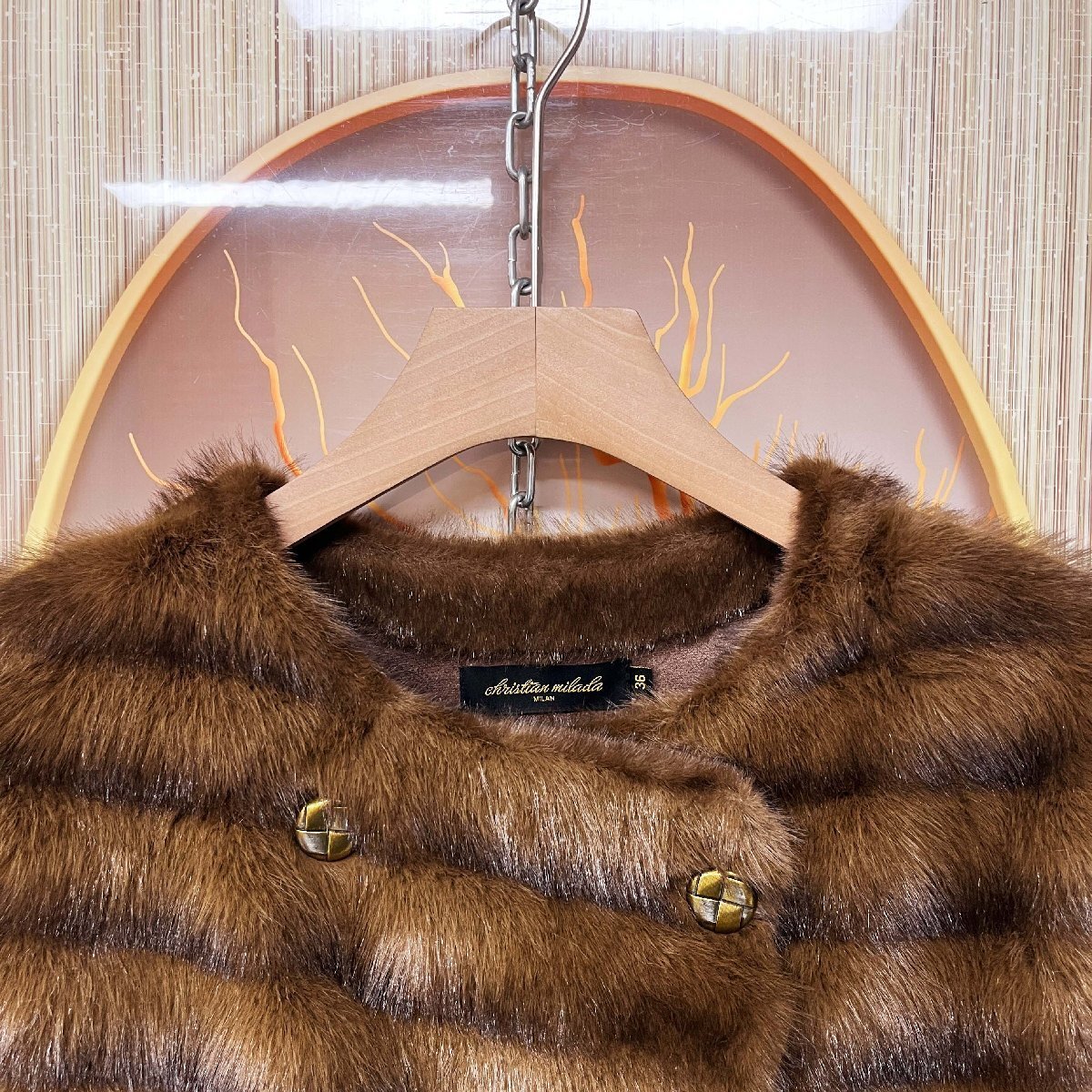 定価8万★christian milada・ミラノ発・ファーコート★ミンク混 保温 柔らかい ミドル丈 毛皮ジャケット コート アウター レディース S/34