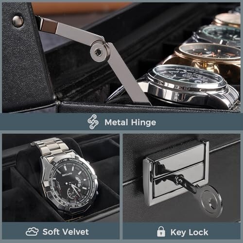 透明度の高いガラス蓋が時計をエレガントに演出し、お気に入りの時計をすぐに見つけることができます。