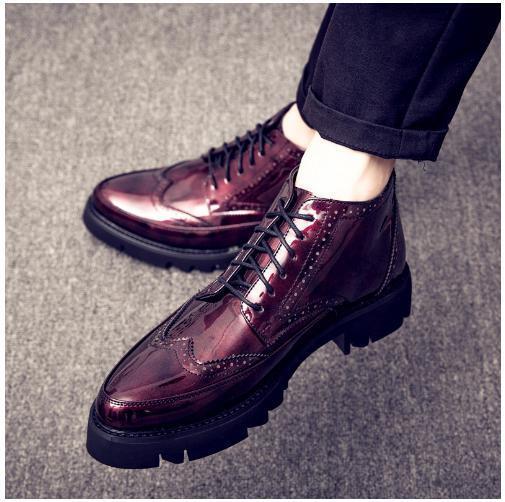 メンズ ビジネス レザー シューズ レッド 24.5㎝ 革靴 靴 カジュアル 屈曲性 通勤 軽量 インポート品【n137】