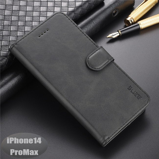 iPhone14PROMax ケース PUレザー おしゃれ スマホケース スマホカバー ブラック 耐衝撃 衝撃吸収【n276】