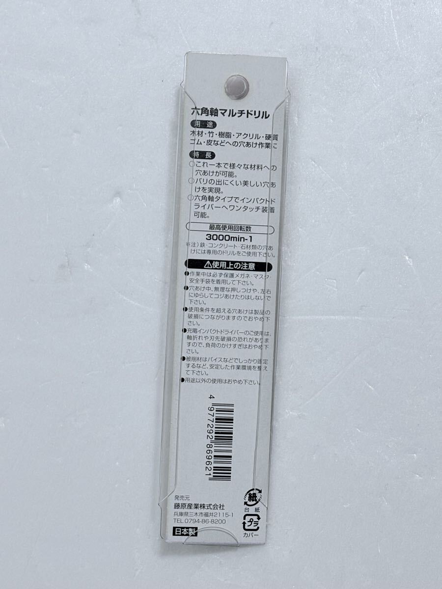 | 【商品写真、商品説明、発送詳細、出品者プロフィール、注意事項をよくご覧になり、ご理解・ご了承をいただいた上で購入を検討してくださいますようお願いいたします。】 閲覧いただきありがとうございます。 『SK11 藤原産業 六角軸マルチドリル 4.5mm 5個セット 未使用品』です。 ※こちらの商品は5個セットでの販売となります。バラ売りには対応しておりませんので、予めご了承ください。 ☆1本で様々な材料への穴あけが可能です。 ☆バリの出にくい美しい穴あけが可能です。 ☆六角軸タイプでインパクトドライバーへワンタッチ装着が可能です。 ☆電気ドリル・インパクトドライバ・充電ドリルドライバ・ボール盤にてご使用ください。 ☆用途…木材・竹・樹脂・アクリル・硬質ゴム・革等への4.5mm穴あけ用ドリル。 ◎サイズ…4.5mm ◎6.35mm六角軸 ◎対応機種…電気ドリル・充電インパクト・充電ドリルドライバー・ボール盤 ◎最高使用回転数…3000min-1 ◎JAN…4977292869621 ◎メーカー…藤原産業 株式会社 ◎日本製 ※当方はこの品物については知識がありません。わかる方のみ購入の検討をお願いします。 ★本体に傷や汚れ等あります。写真で判断の難しい傷や汚れがあるかもしれません。 ★未使用未開封品ですが、長期保管品になります。 ★ご理解の上、購入の検討をお願いします。 ※状態等は商品写真や商品説明を参考にしてください。 ※出品者プロフィールや注意事項および発送についても必ずよくご覧いただいてから購入を検討してくださいますよう、よろしくお願いいたします。 | ||