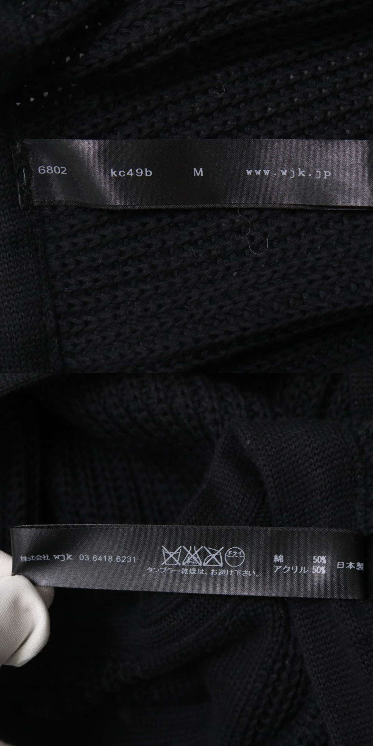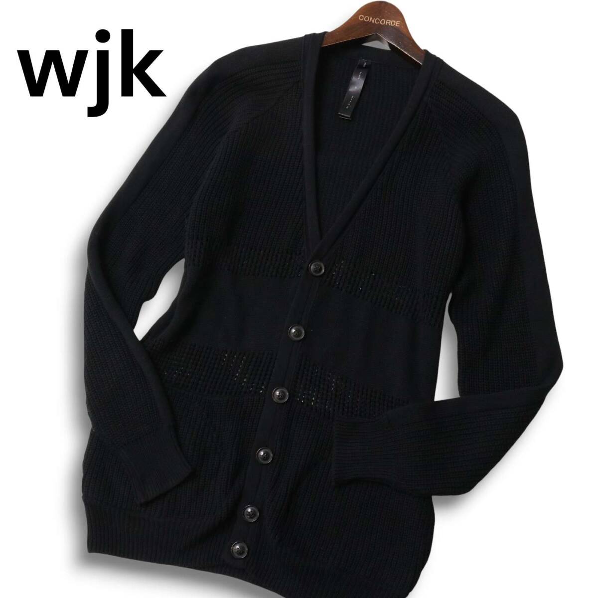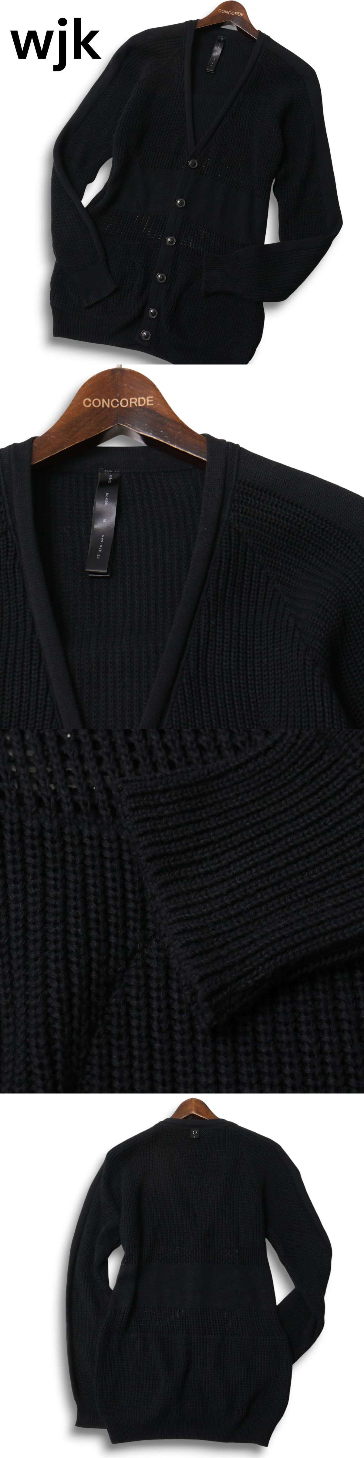 wjk ダブルジェイケイ 秋冬 切替★ Vネック ニット カーディガン Sz.M メンズ 黒 日本製