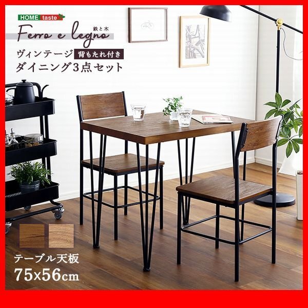 | ヴィンテージ背もたれダイニング3点セット! 背もたれは背中がフィットしやすい座っていて楽な仕様になっています。 厚みのある天板とオブジェのような脚がお部屋をおしゃれに演出し、シャビーオーク、ウォールナットの2色でヴィンテージ空間をお楽しみ頂けます。 水がこぼれてもサッと拭くだけなので、お手入れラクラクです。 コンパクトサイズなので、一人暮らしやカップルのお部屋にピッタリです。 |