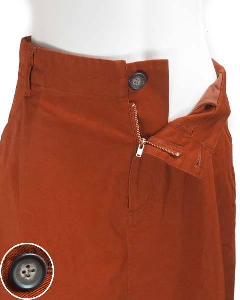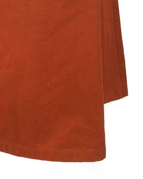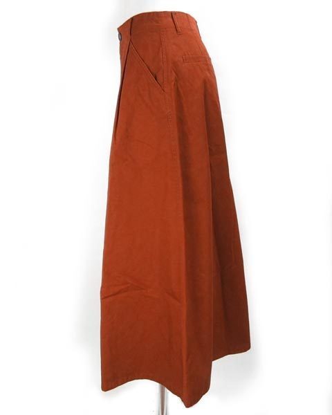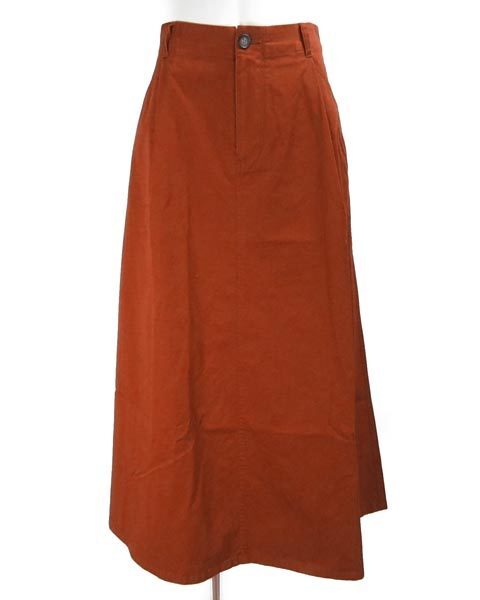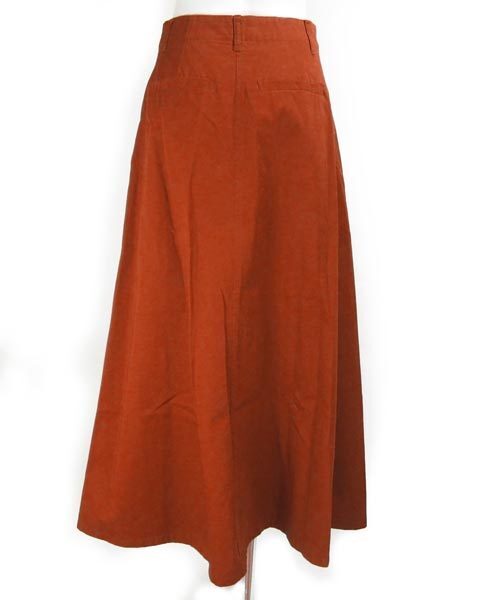 | ブラウンみのある深いオレンジのスカート。流行に左右されないAラインで、カジュアルスタイルで活躍してくれます。茶系や黒、紺、黄味の入ったお色など、トップスのお色目でいろんな雰囲気が楽しめます。 |