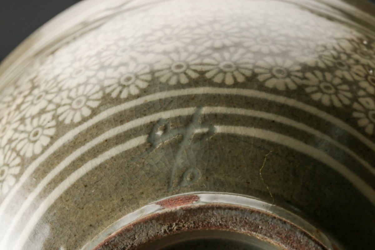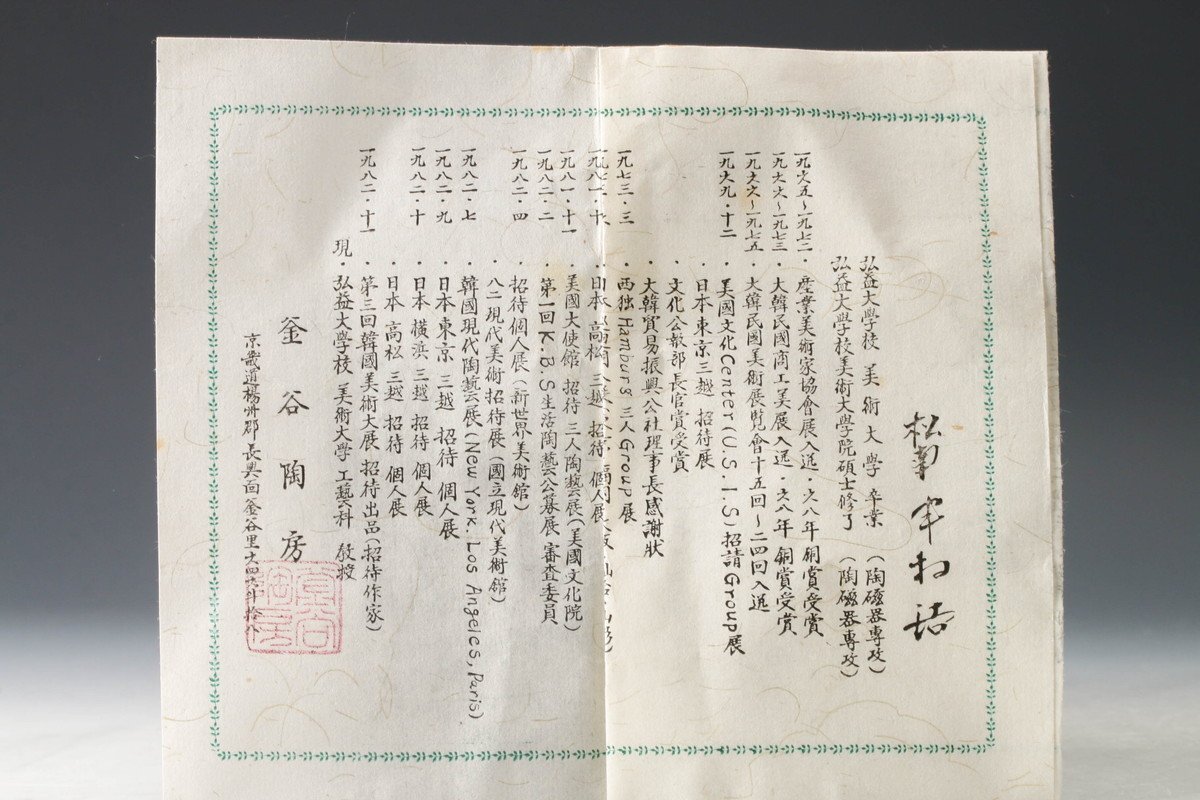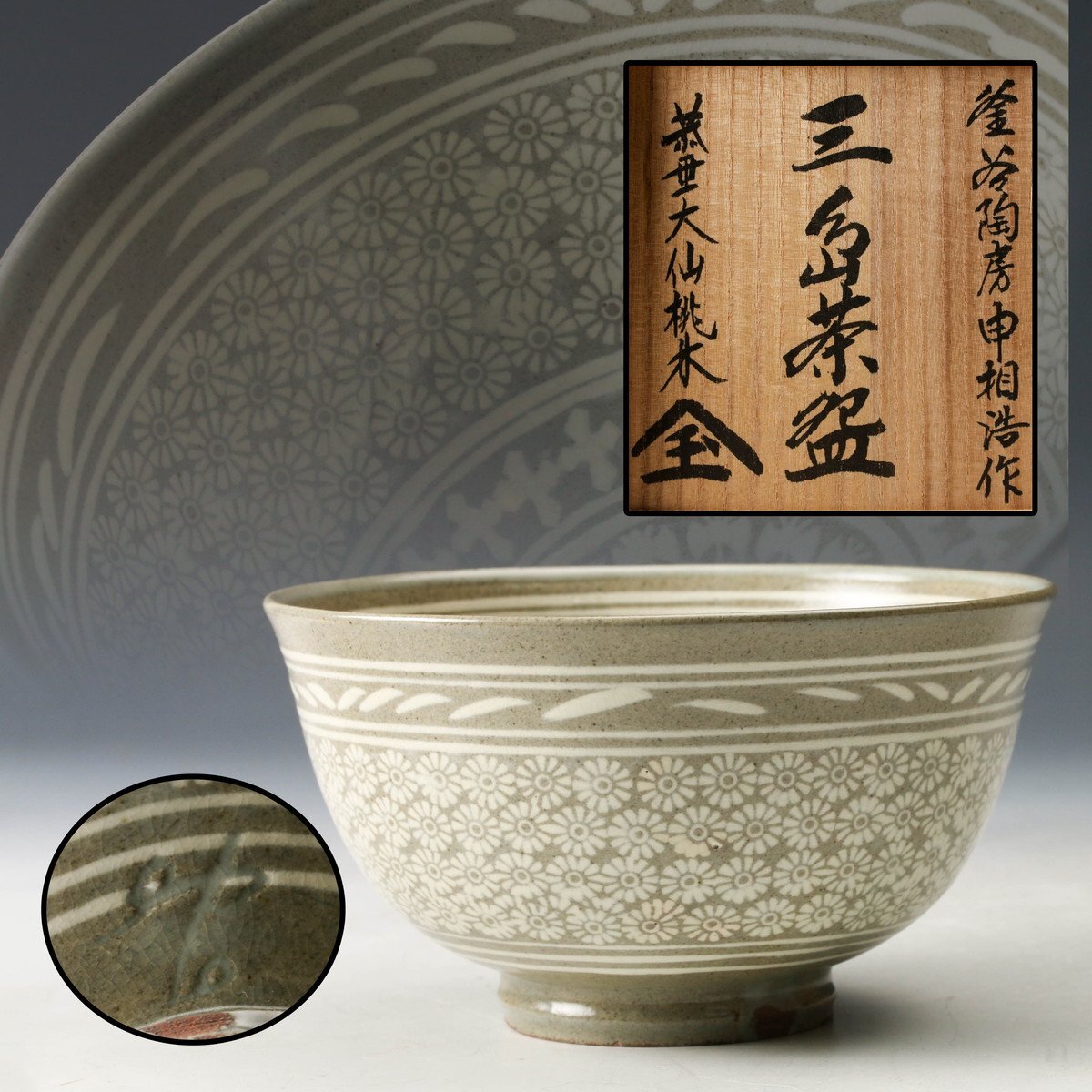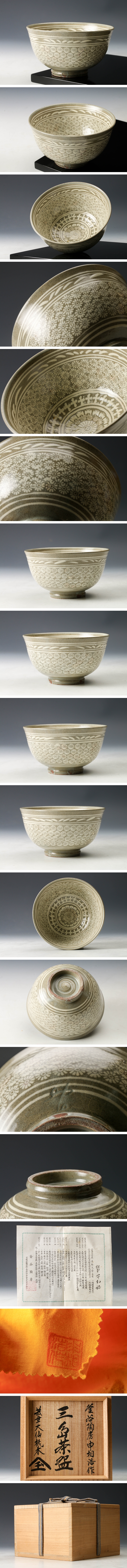 【佳香】韓国人間国宝 申相浩 松南 釜谷陶房 三島茶碗 大徳寺塔頭大仙院住職紫野大仙桃林(尾関宗園)書付箱 共布 栞 茶道具 本物保証