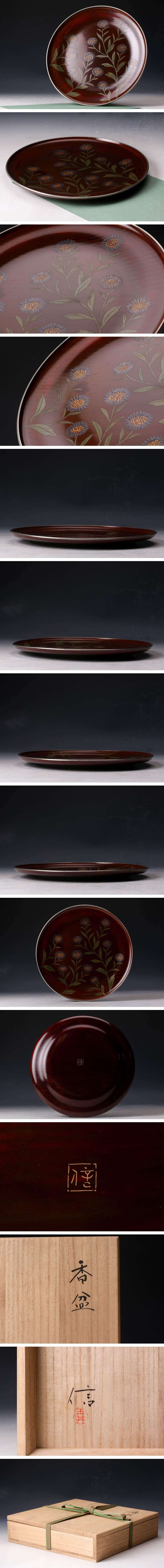 【佳香】玉井信 香盆 銀縁 彩漆画 共箱 本物保証