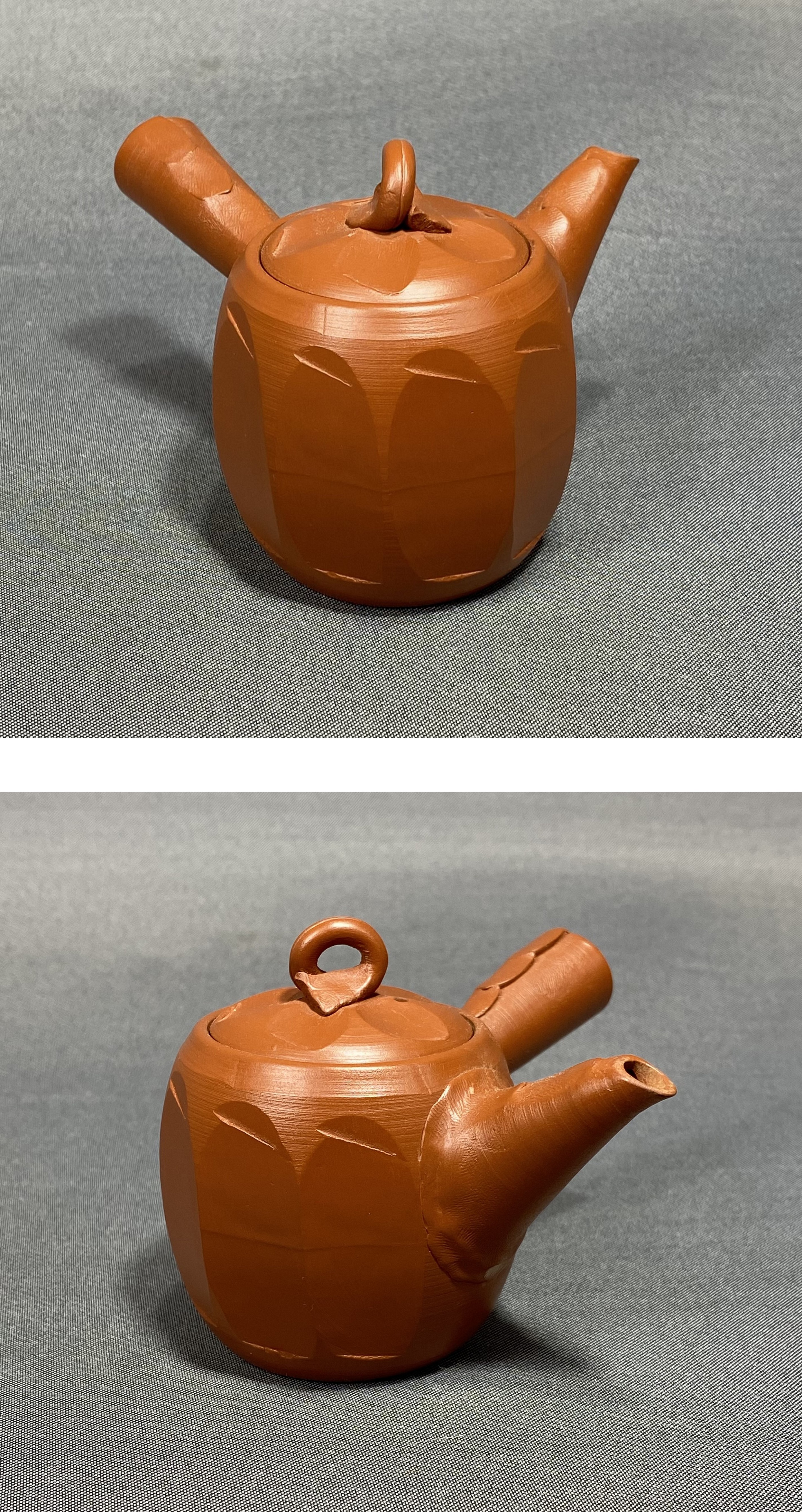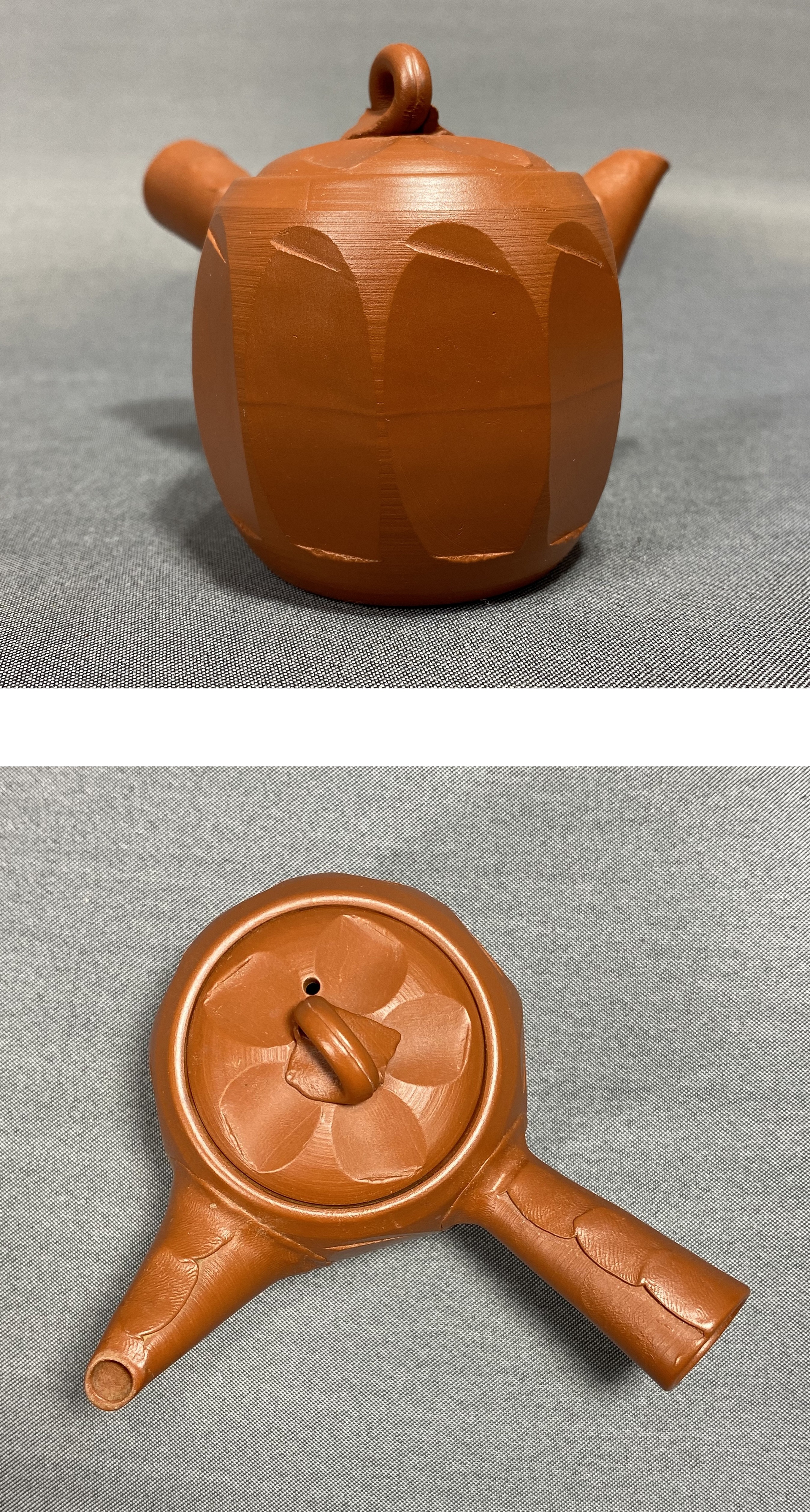 【風車】常滑名工 稲葉石水 造 朱泥 手捻り 横手急須▲ 在銘 ▲陶芸家 常滑市 振興長三賞デザイン部門金賞▲煎茶道具茶器 時代物