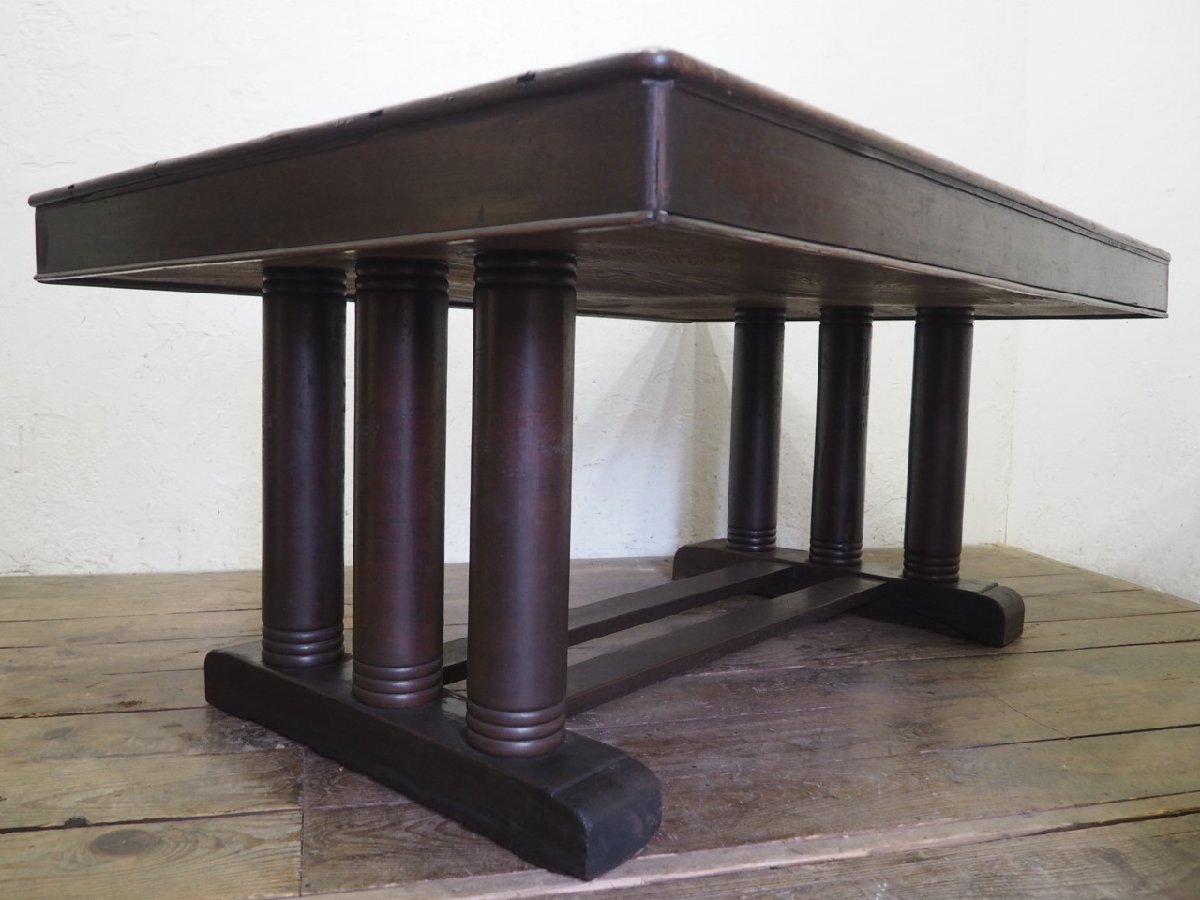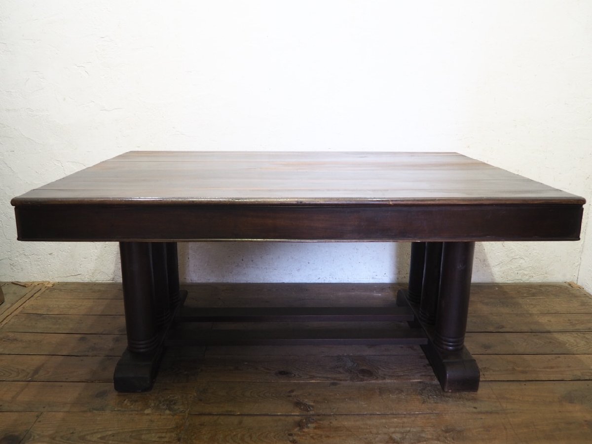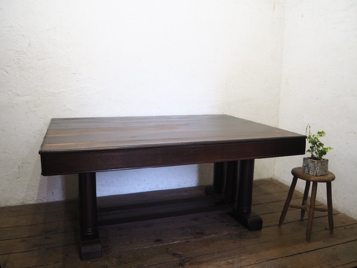 タ荷S0140◆天板W152cm×D104,5cm◆アンティーク◆重厚な大きい木製ダイニングテーブル◆洋館 展示台 机 リビング インテリアW(ヤE)伊