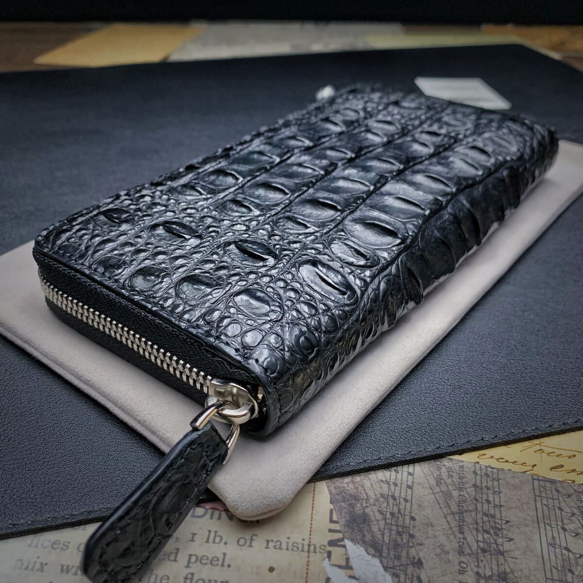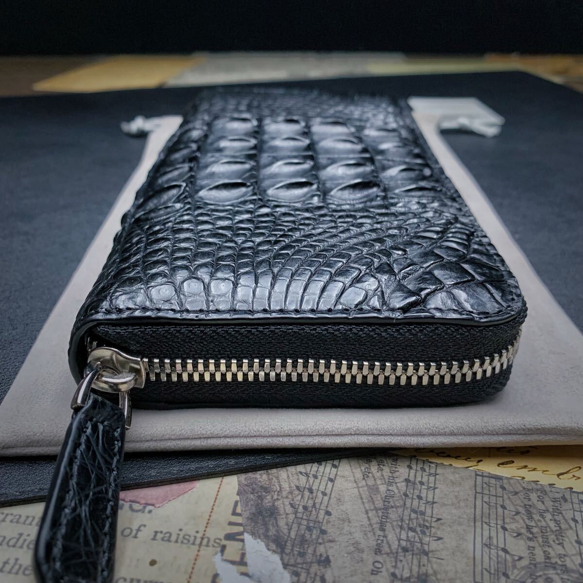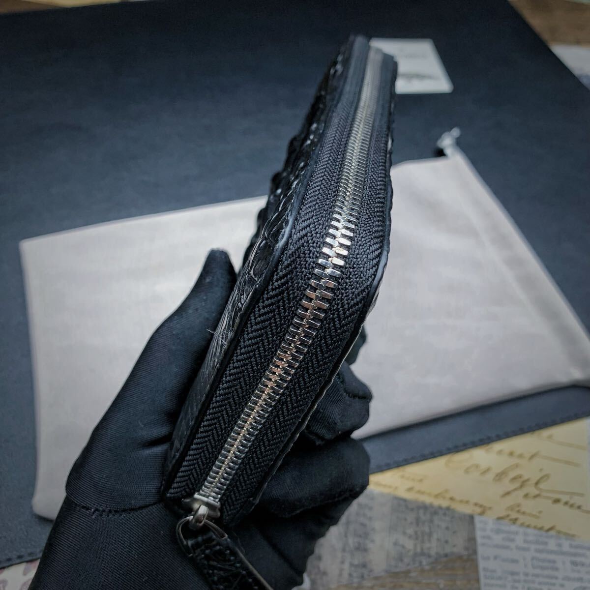 ・クロコダイルと呼ばれている品種のワニ革は人気が高く、独特の模様と凹凸が魅力で、高級ブランド品を中心にクロコダイルが多く使われています。今回はワニ革の代表格である『シャムクロコダイル』のセンターカット背中革のラウンドファスナー財布を出品します。
