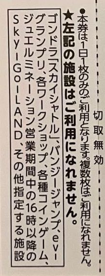 ・画像2の通り、Sky-Go-Land、スカイシャトル、バンジージャンプ等は利用できません。