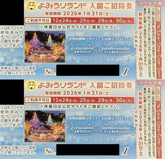匿名 追跡有 送料0円★よみうりランド[入園無料券+のりもの券] 2枚(=2人) 1/31迄★読売LAND ご招待券 ペア,チケット,夫婦,恋人同士 入場可