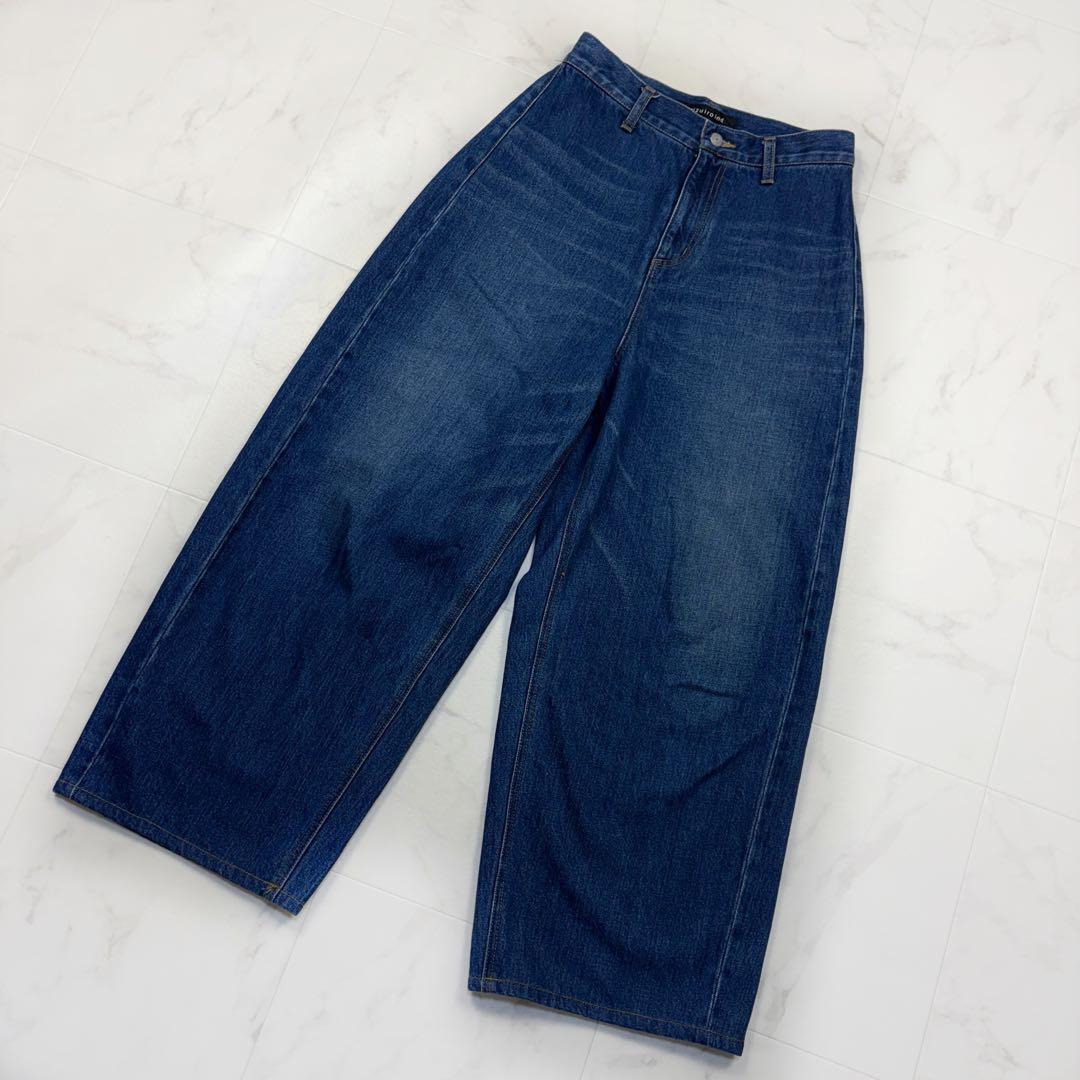 雰囲気のあるダメージ加工を施したデザインで程よいワイド感とメンズライクに穿ける丈のクッションがポイント。