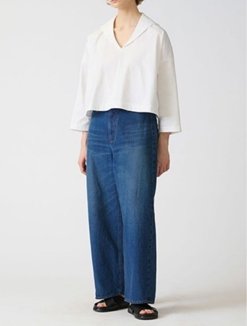 ヴィンテージデニムの型からインスパイアした新型のデザインでハイウエストで穿いていただけるかっこいい1枚です。