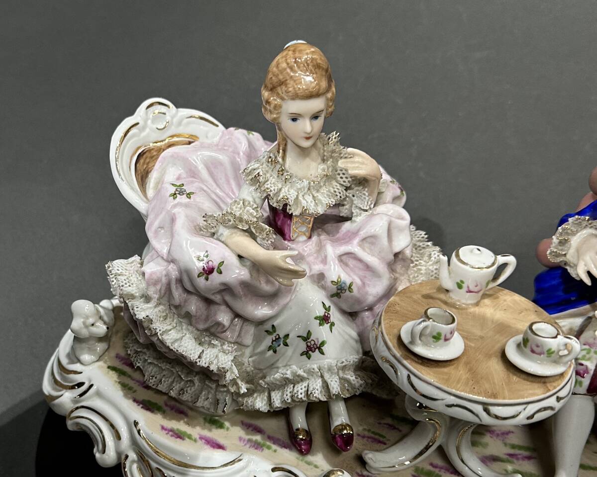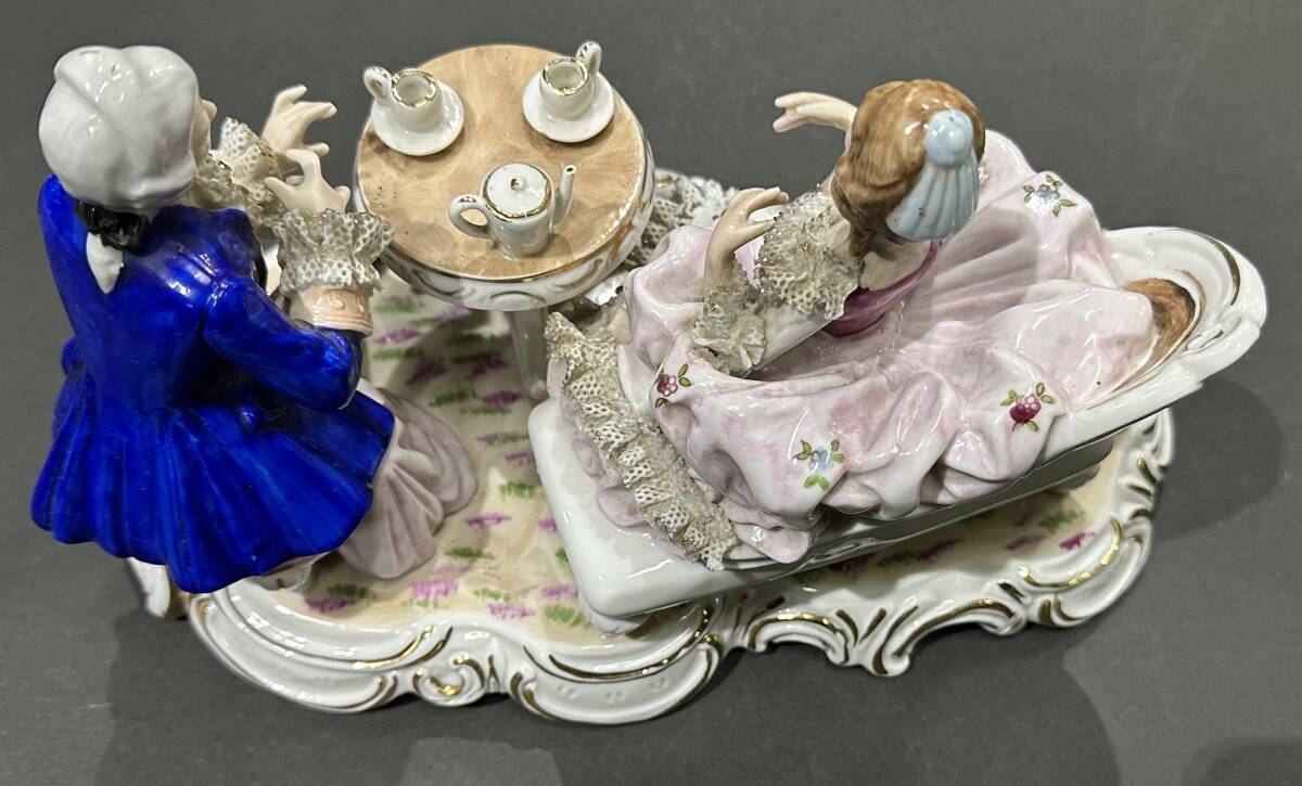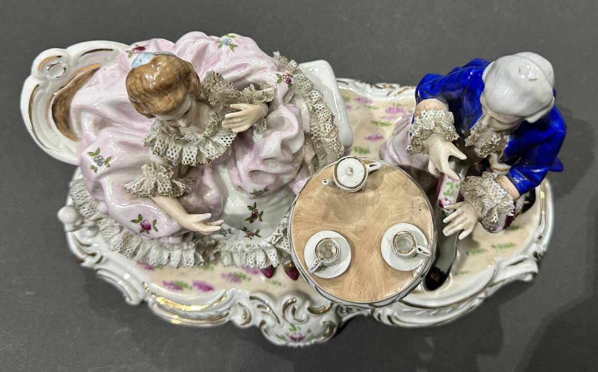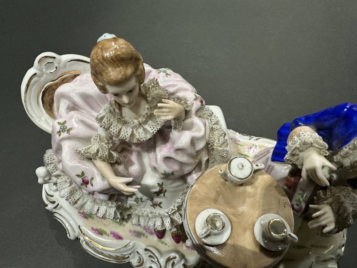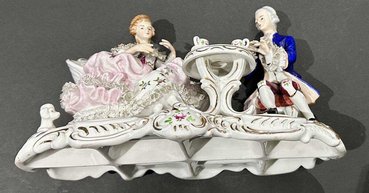 1円~【中古/保管品】陶磁器人形 憩い 加藤工芸 マイセン様式人形 フィギュリン 希少貴族 犬