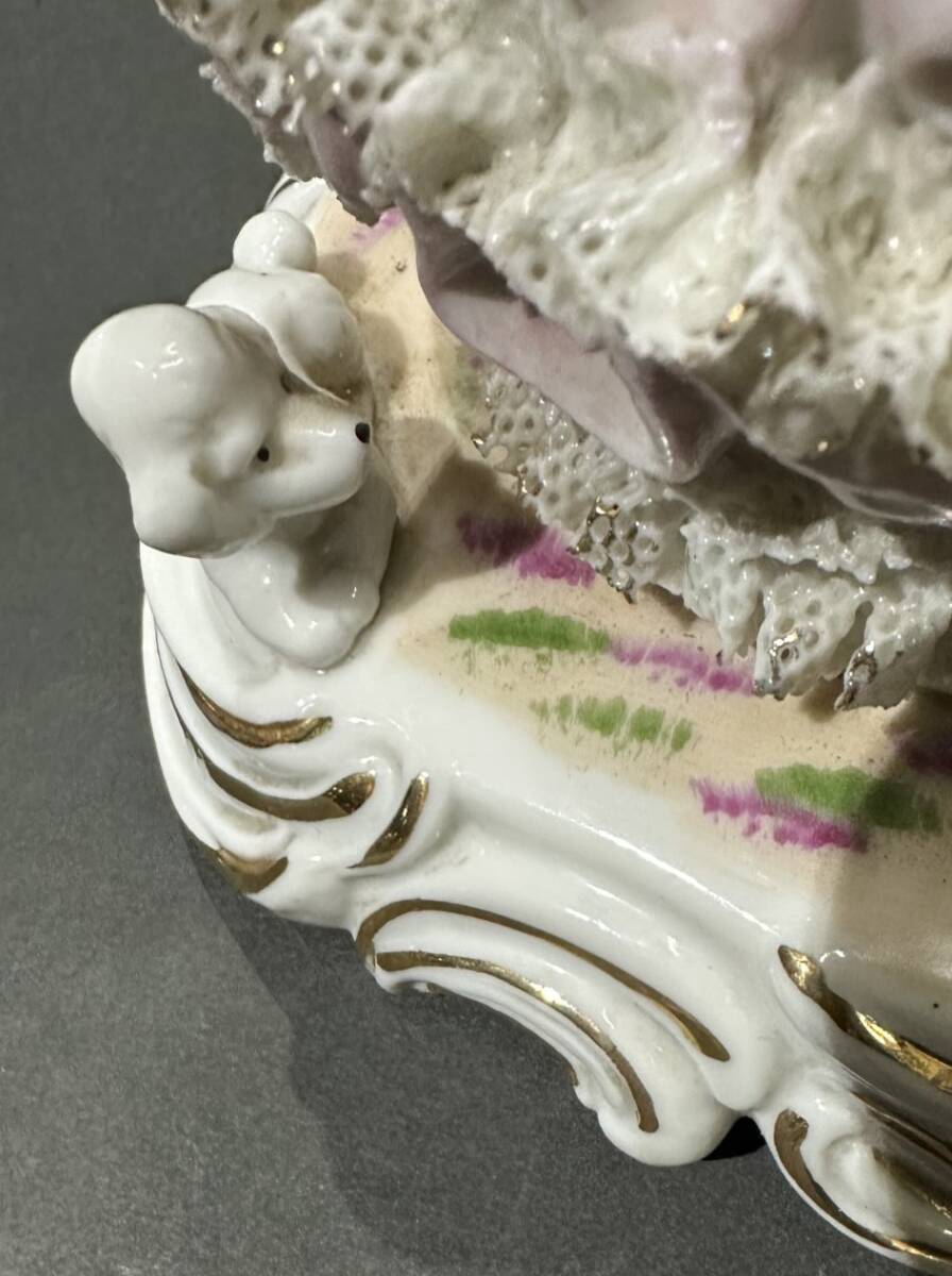 1円~【中古/保管/希少品】陶磁器人形 憩い 加藤工芸 マイセン様式人形 フィギュリン 希少貴族 犬