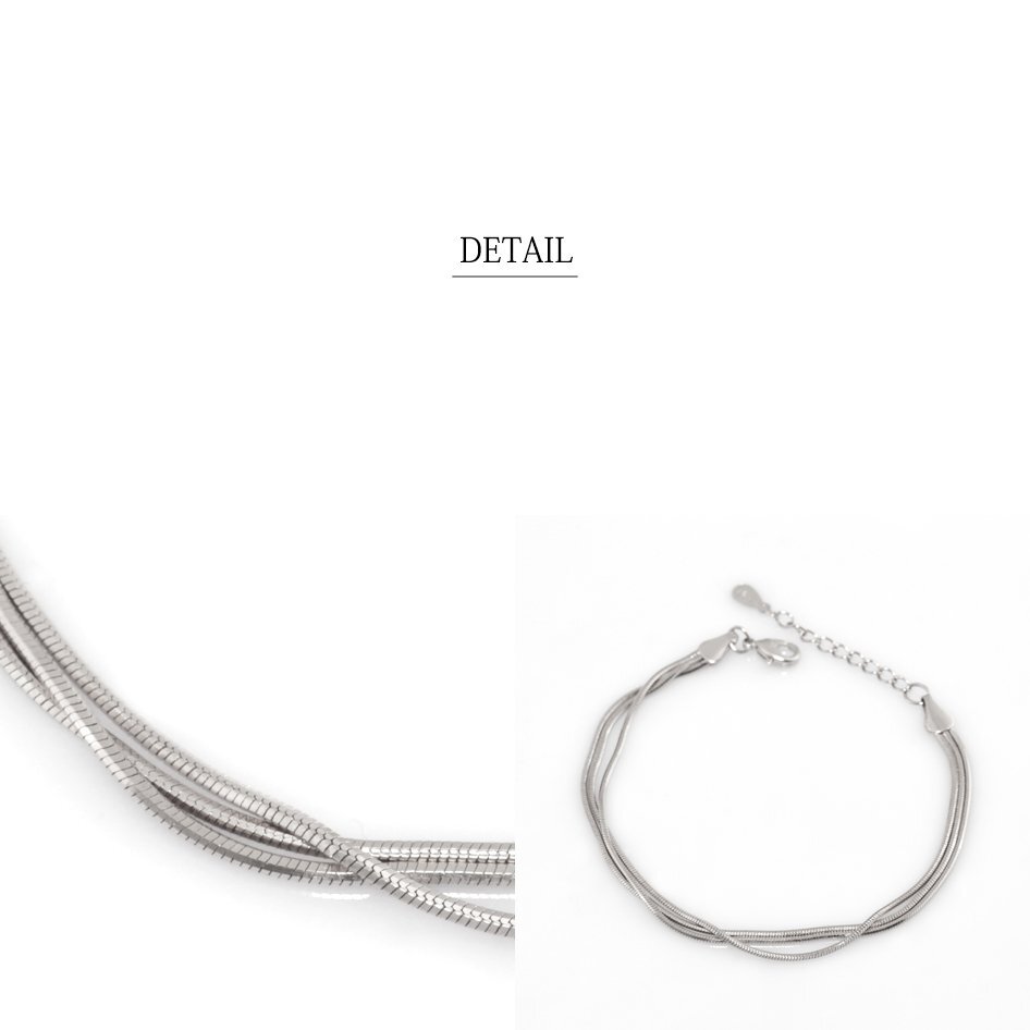 新品/ブレスレット/K18GP/スネークチェーン/シルバー/18金/ホワイトゴールド/レディース/シンプル/3連/艶やか/しなやか/重ねづけ