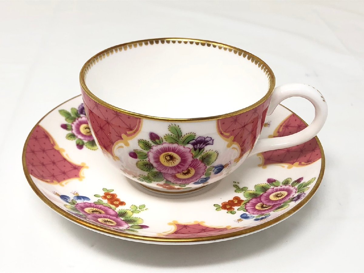 ◆美品 ROYAL WORCESTER ロイヤルウースター ウースターフラワーズ カップ&ソーサー 花柄 金縁 ピンク 中古◆18484★