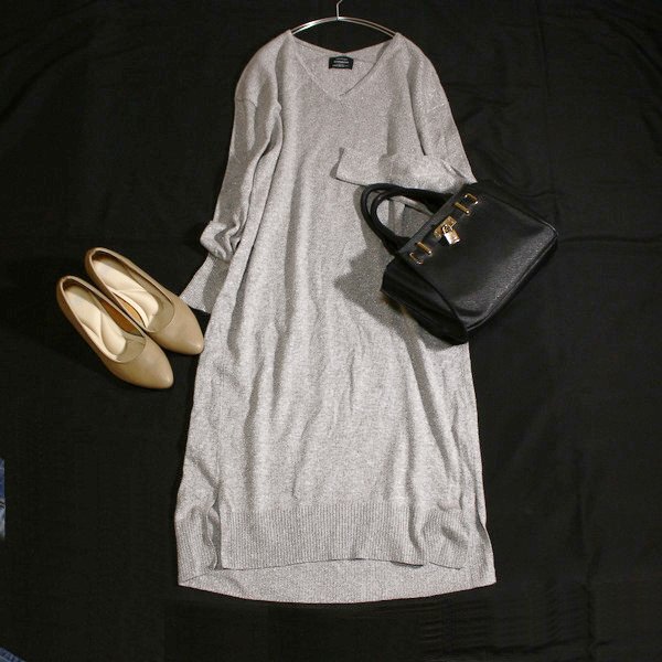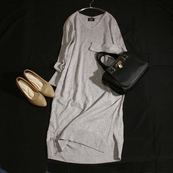 美品 ユナイテッドアローズ GREEN LABEL RELAXING 大人可愛い ラメ ウール ニット ワンピース F 秋 冬 25B12