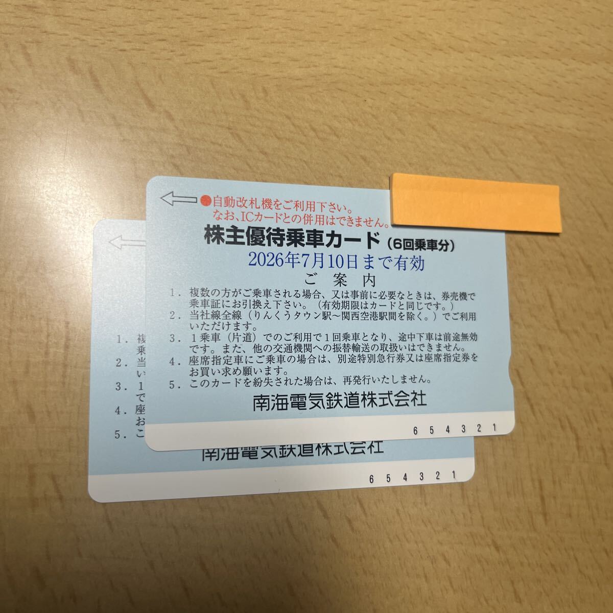 南海電車 南海電気鉄道 株主優待乗車カード 1枚のみ 2026年7月10日迄 6回乗車分