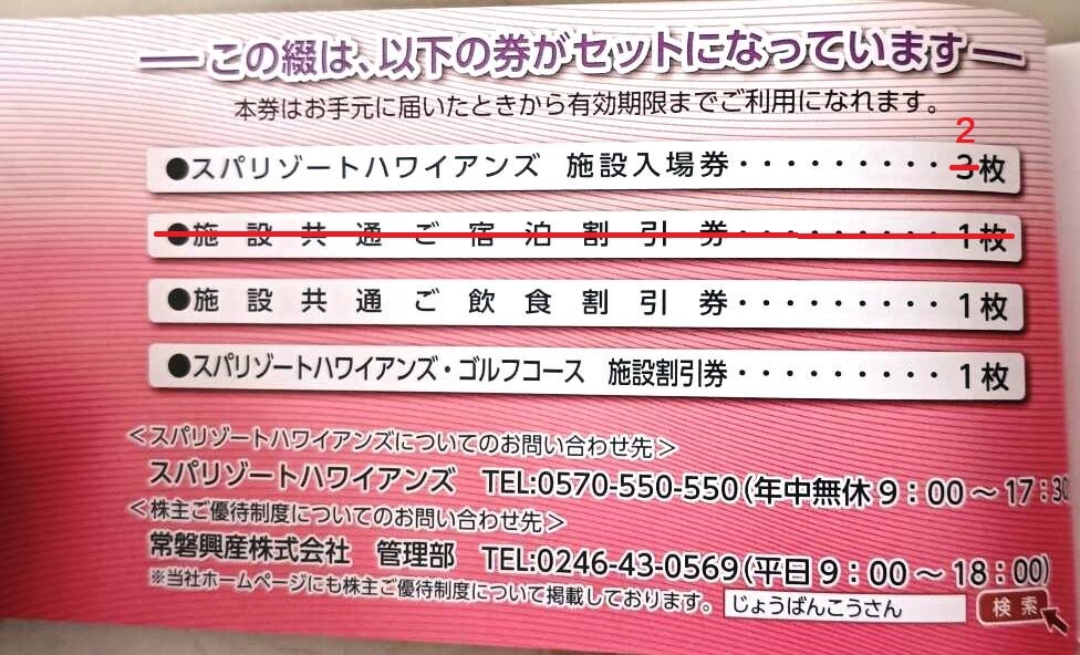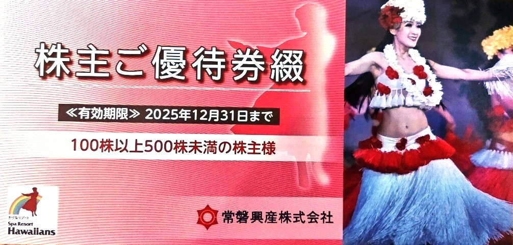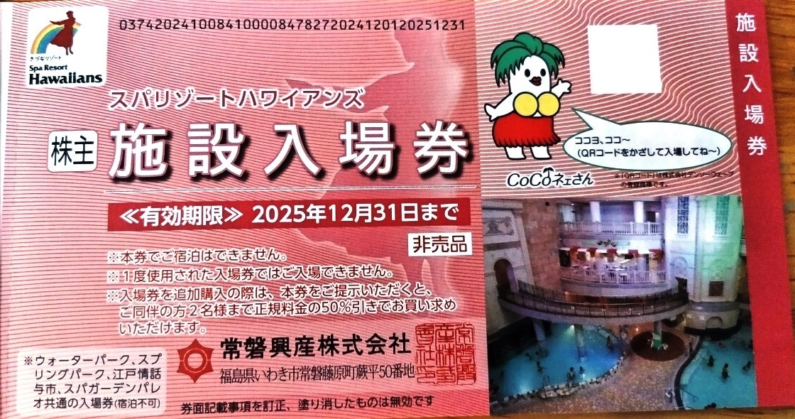 ■スパリゾートハワイアンズ■入場券2枚+割引券2枚■期限12/31迄■Hawaiians 株主ご優待 招待券 常磐興産■プール 温泉 フラガール■