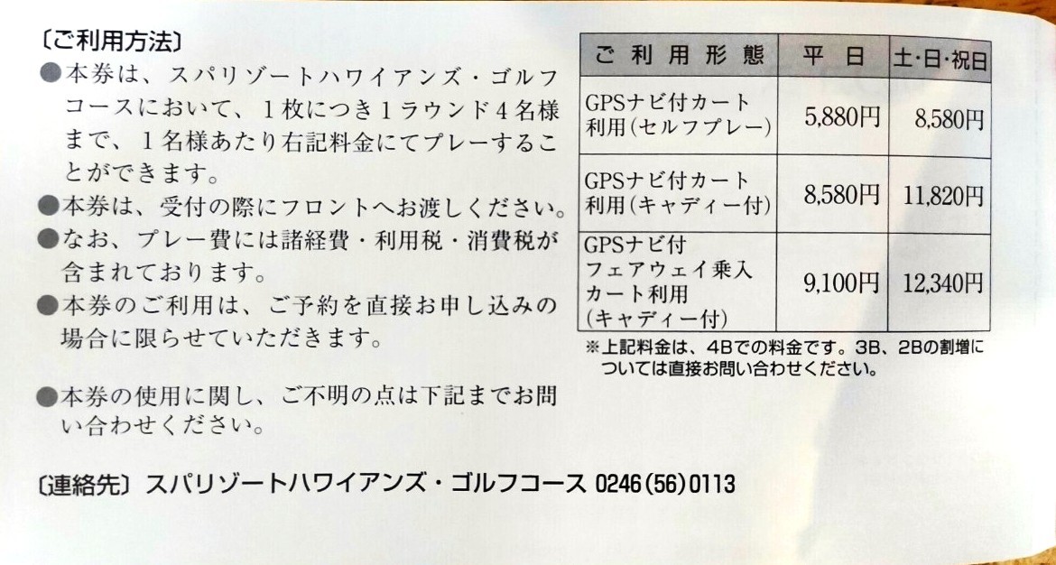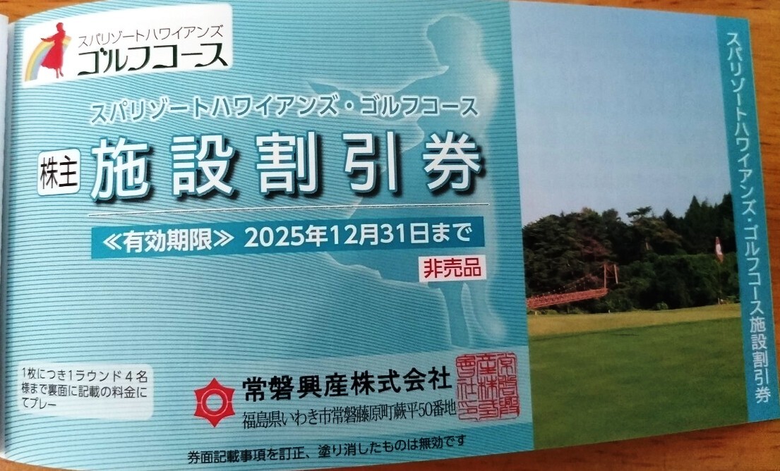 ●施設割引券は、スパリゾートハワイアンズ・ゴルフコースで1枚につき1ラウンド4名様までご利用になれます。