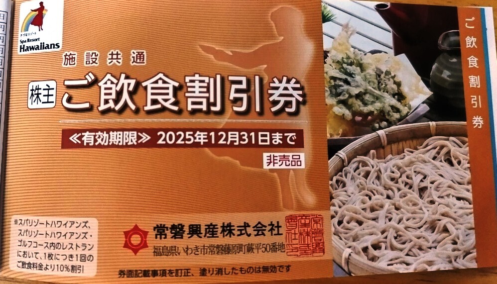 株主ご優待券の詳細はこちらをご覧下さい♪"http://www.joban-kosan.com/kabunusi/"