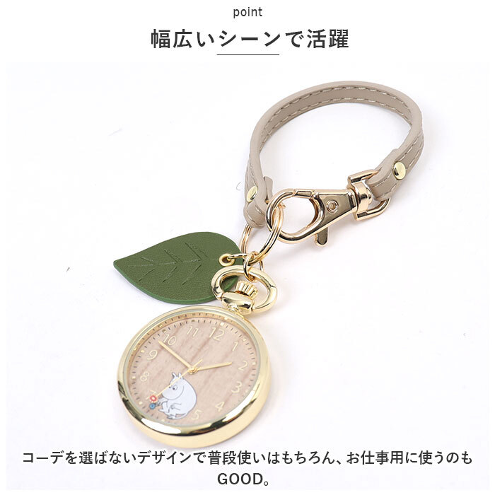 | 商品説明 | ・・ムーミンデザインが可愛いキーチェーンウォッチが新発売♪ ・【ナチュラルテイスト】 ・木目調のフェイスと合皮の組み合わせがナチュラル感あふれるアイテム。金具にはゴールドカラーを採用し上品感もプラス。 ・【キャラクター付き】 ・ムーミンに登場するキャラクターが描かれたアイテム。ナチュラル感+キャラクターデザインで心がほっこりするような仕上がり。 ・【ストラップタイプ】 ・持ち手に吊り下げてバッグのチャームで使うのもおススメ♪時計の金属部分が肌に直接触れるのが心配・・・という敏感肌の方にもピッタリ。 ・【幅広いシーンで活躍】 ・コーデを選ばないデザインで普段使いはもちろん、お仕事用に使うのもGOOD。 ・【日本製ムーブメント】 ・静かに正確な時を刻む。確かな性能を誇る、安心と信頼の日本製高性能ムーブメントを採用。 ・【プチギフトにも最適】 ・幅広い年代の女性が着用できる上品なデザインで、お世話になった方やご友人へのプチギフトに最適。 |