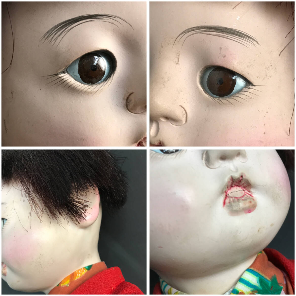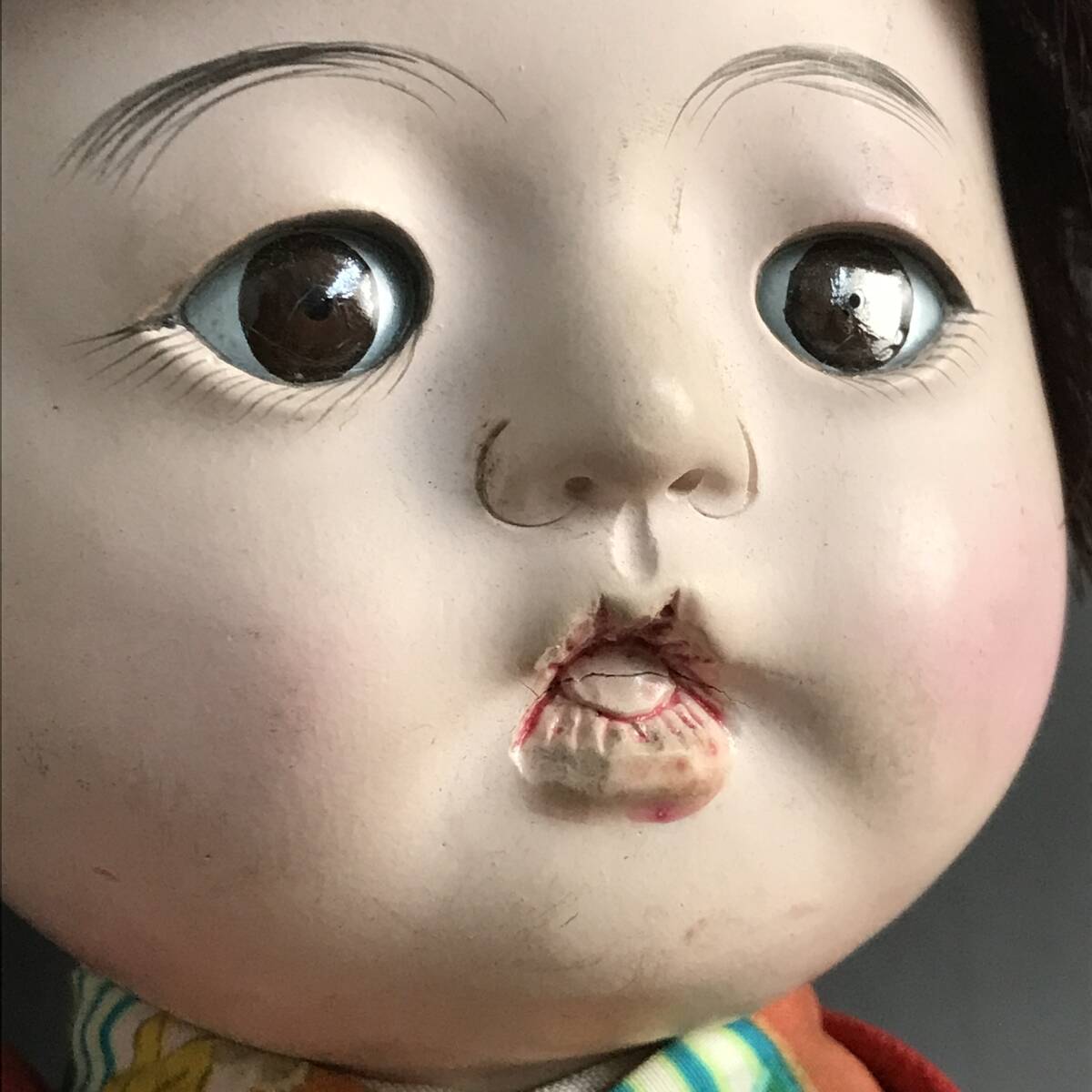 中古品です。 清掃しておりますが 落ちない傷、汚れなどございます。 おなかにふいご?のようなものございますが 鳴りません。 顔に少しヒビございます。 ※経年の汚れ等は経年の味とお考え下さい。 写真にて状態の確認をお願いいたします。 その他細かな詳細は画像参照でお願いします。 扱っている商品は骨董品や中古品を扱っております。 極端に目立つ欠損は説明文・画像にて表記致しますが、 多少スレ・キズ・汚れなどがある品としてご理解下さい。 |