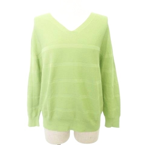 アンタイトル UNTITLED カットソー 長袖 Vネック 無地 薄手 0 XSサイズ ライトグリーン ■YHS11 レディース