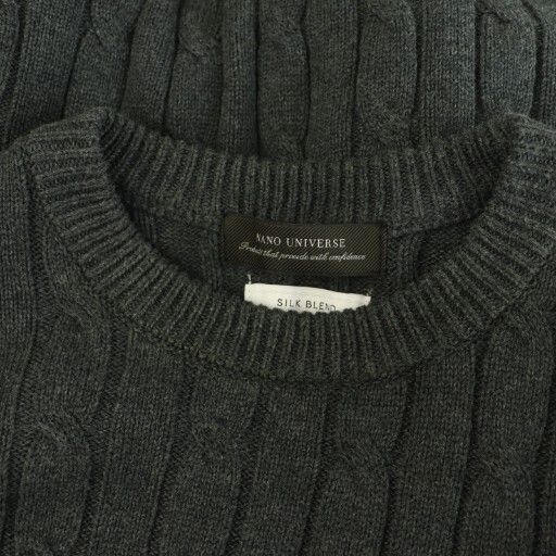 ナノユニバース nano universe SILK BLENDシルクブレンドケーブル編みクルーネックニット セーター 長袖 M グレー /MY ■OS メンズ