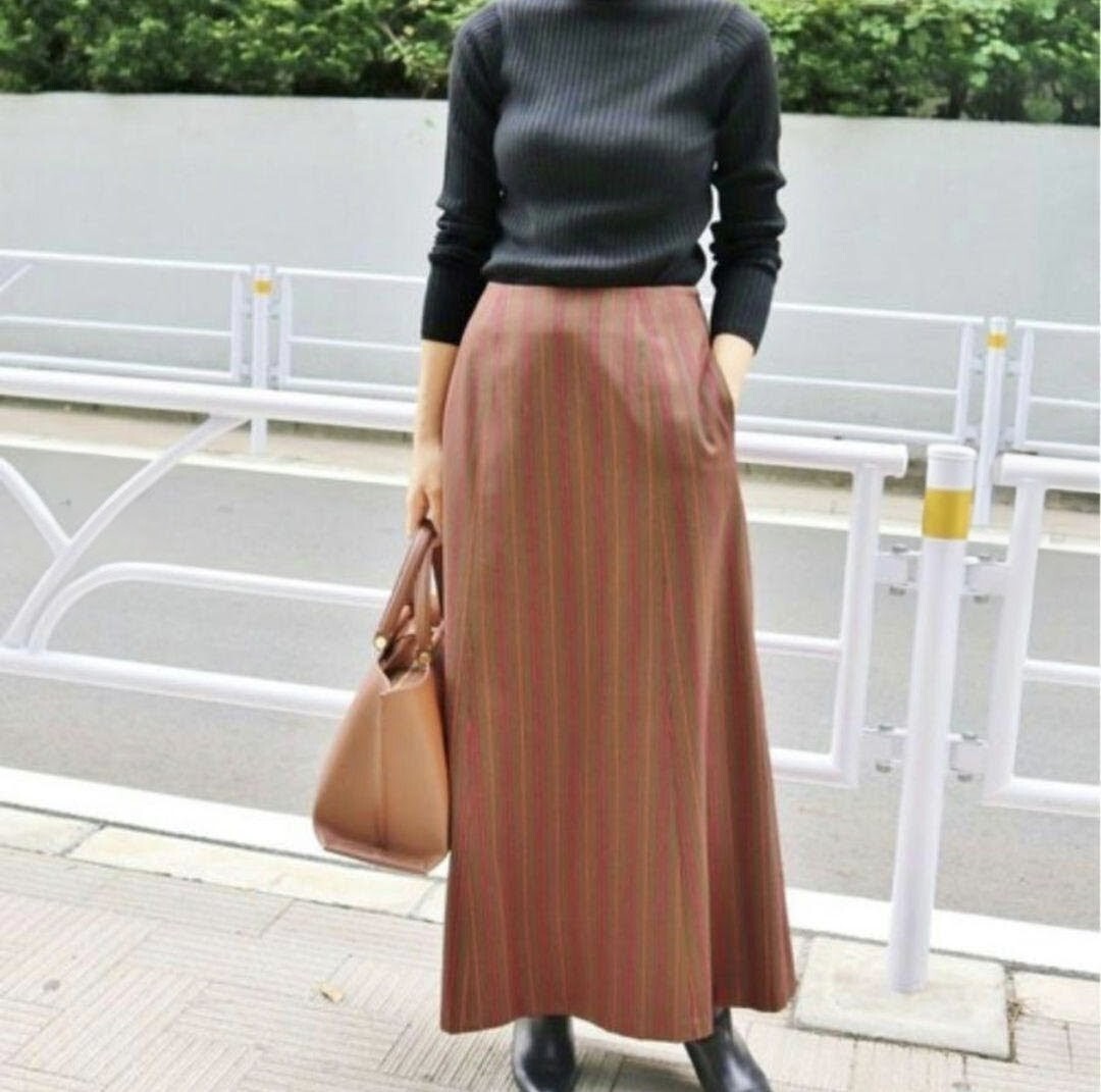 ウールマルチストライプ生地をIENA別注でお作りしたこだわりのスカート。ストライプがランダムに見えるようなパターンがポイント。ロングストレート丈で、 カジュアルからキレイめまでデイリーユースにぴったりなアイテムです。