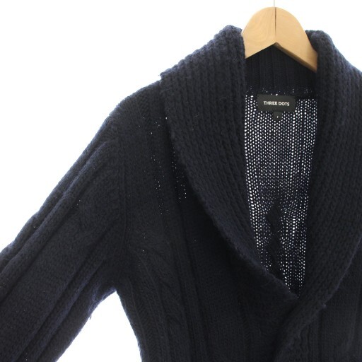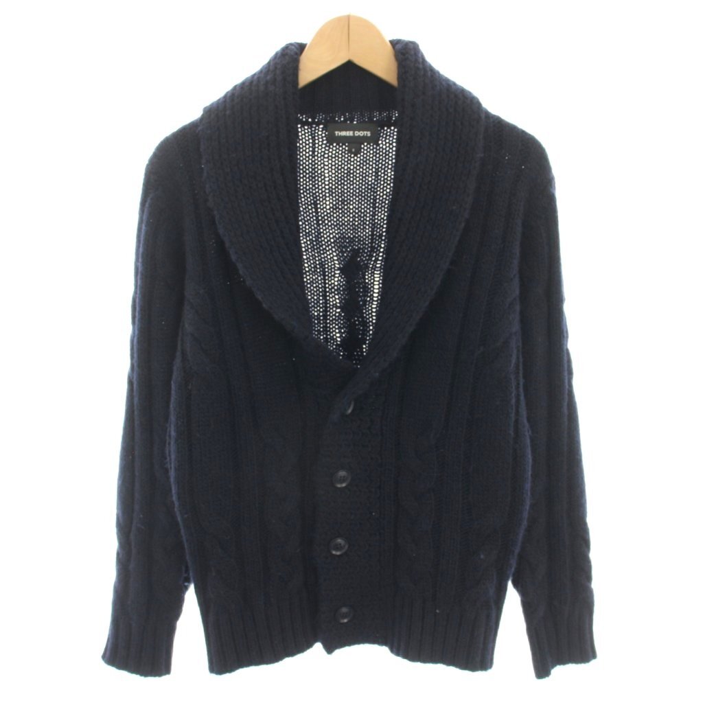 スリードッツ three dots ニットカーディガン ショールカラー 長袖 アルパカ混 S 紺 ネイビー UF701MY /YT メンズ